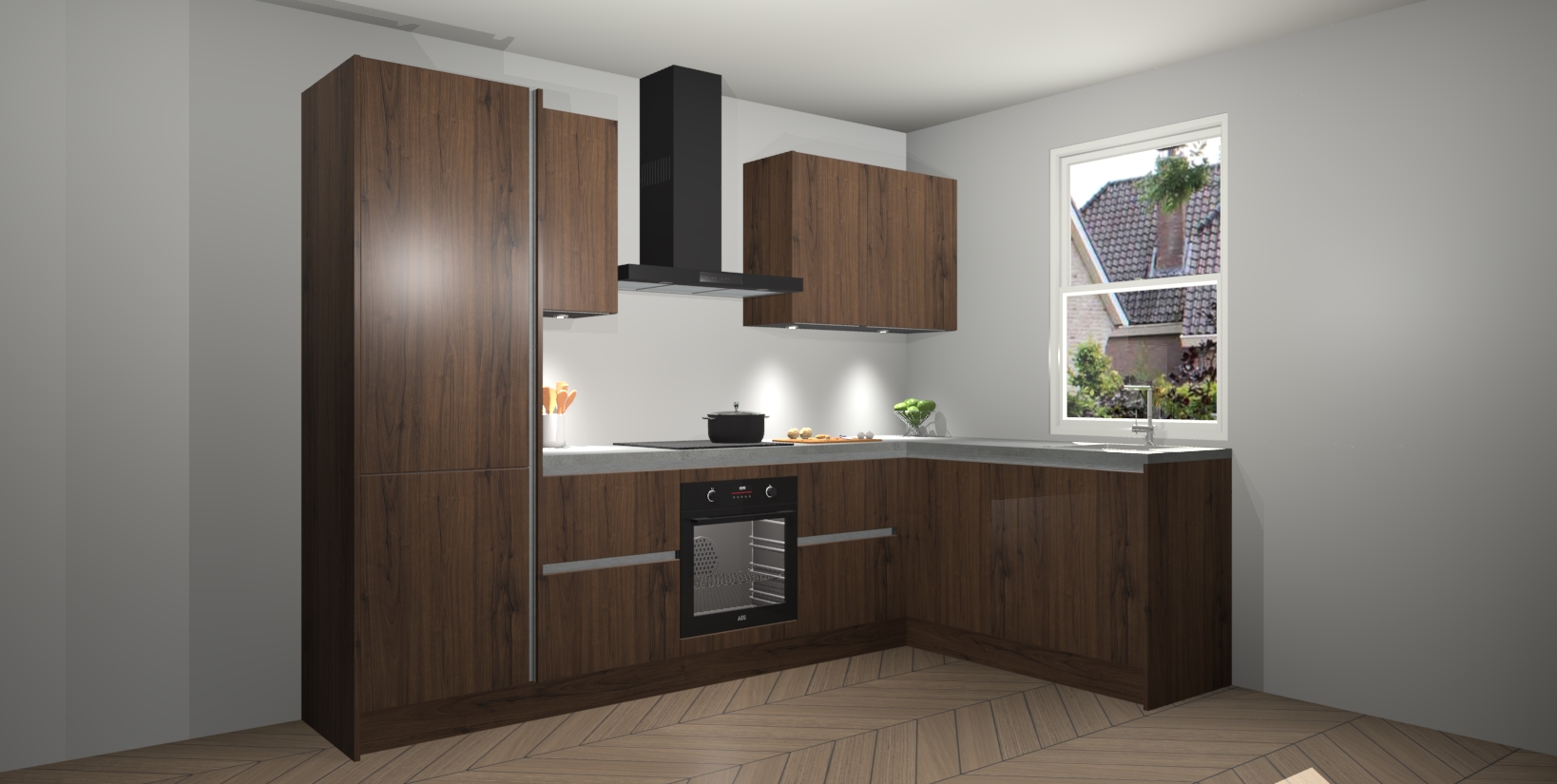 Maak kennis met de trendsettende en luxe Noten greeploze keuken Bazel! Deze uitzonderlijke keuken van Duitse kwaliteit is stijlvol, modern en perfect om elk huis mee op te fleuren. De binnenkant van de kasten worden meegenomen in een bijpassende kleur om een samenhangende eigentijdse esthetiek te voltooien. U zult dol zijn op hoe uw pas gerenoveerde keuken eruitziet met de Noten editie!