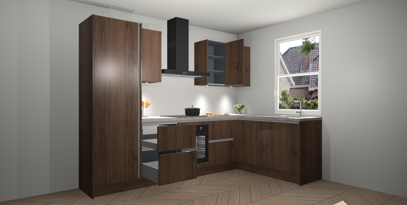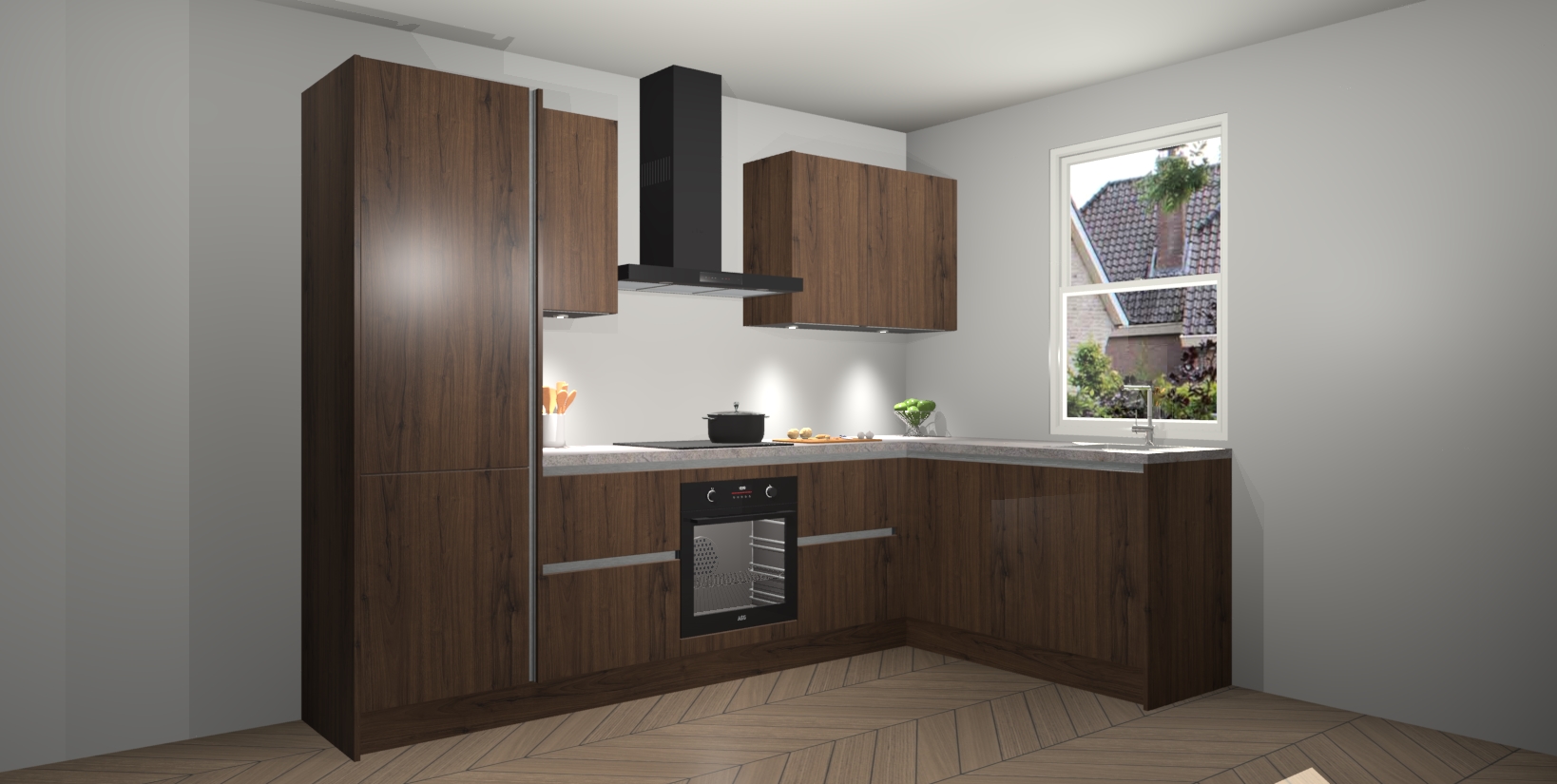 Maak kennis met de trendsettende en luxe Noten greeploze keuken Bazel! Deze uitzonderlijke keuken van Duitse kwaliteit is stijlvol, modern en perfect om elk huis mee op te fleuren. De binnenkant van de kasten worden meegenomen in een bijpassende kleur om een samenhangende eigentijdse esthetiek te voltooien. U zult dol zijn op hoe uw pas gerenoveerde keuken eruitziet met de Noten editie!