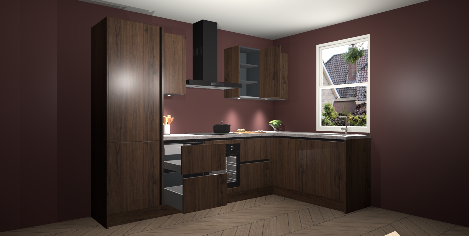 Maak kennis met de trendsettende en luxe Noten greeploze keuken Bazel! Deze uitzonderlijke keuken van Duitse kwaliteit is stijlvol, modern en perfect om elk huis mee op te fleuren. De binnenkant van de kasten worden meegenomen in een bijpassende kleur om een samenhangende eigentijdse esthetiek te voltooien. U zult dol zijn op hoe uw pas gerenoveerde keuken eruitziet met de Noten editie!