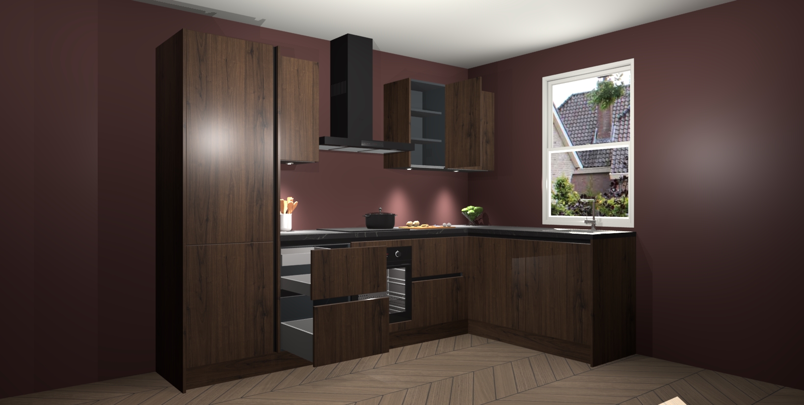 Maak kennis met de trendsettende en luxe Noten greeploze keuken Bazel! Deze uitzonderlijke keuken van Duitse kwaliteit is stijlvol, modern en perfect om elk huis mee op te fleuren. De binnenkant van de kasten worden meegenomen in een bijpassende kleur om een samenhangende eigentijdse esthetiek te voltooien. U zult dol zijn op hoe uw pas gerenoveerde keuken eruitziet met de Noten editie!