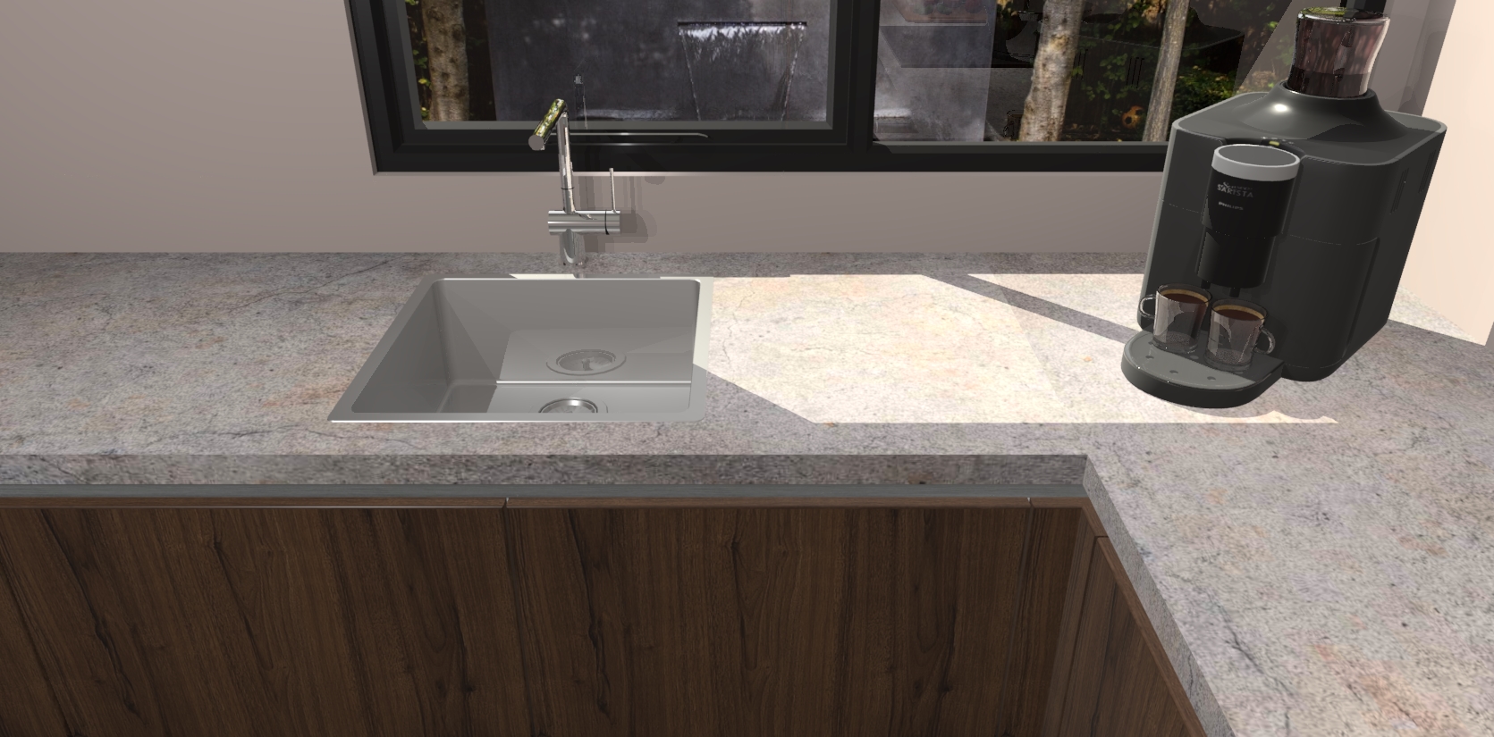 - De spoelbak is nog niet in gevreesd. Dit dient tijdens het werk gedaan te worden