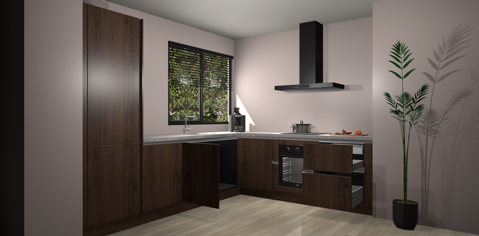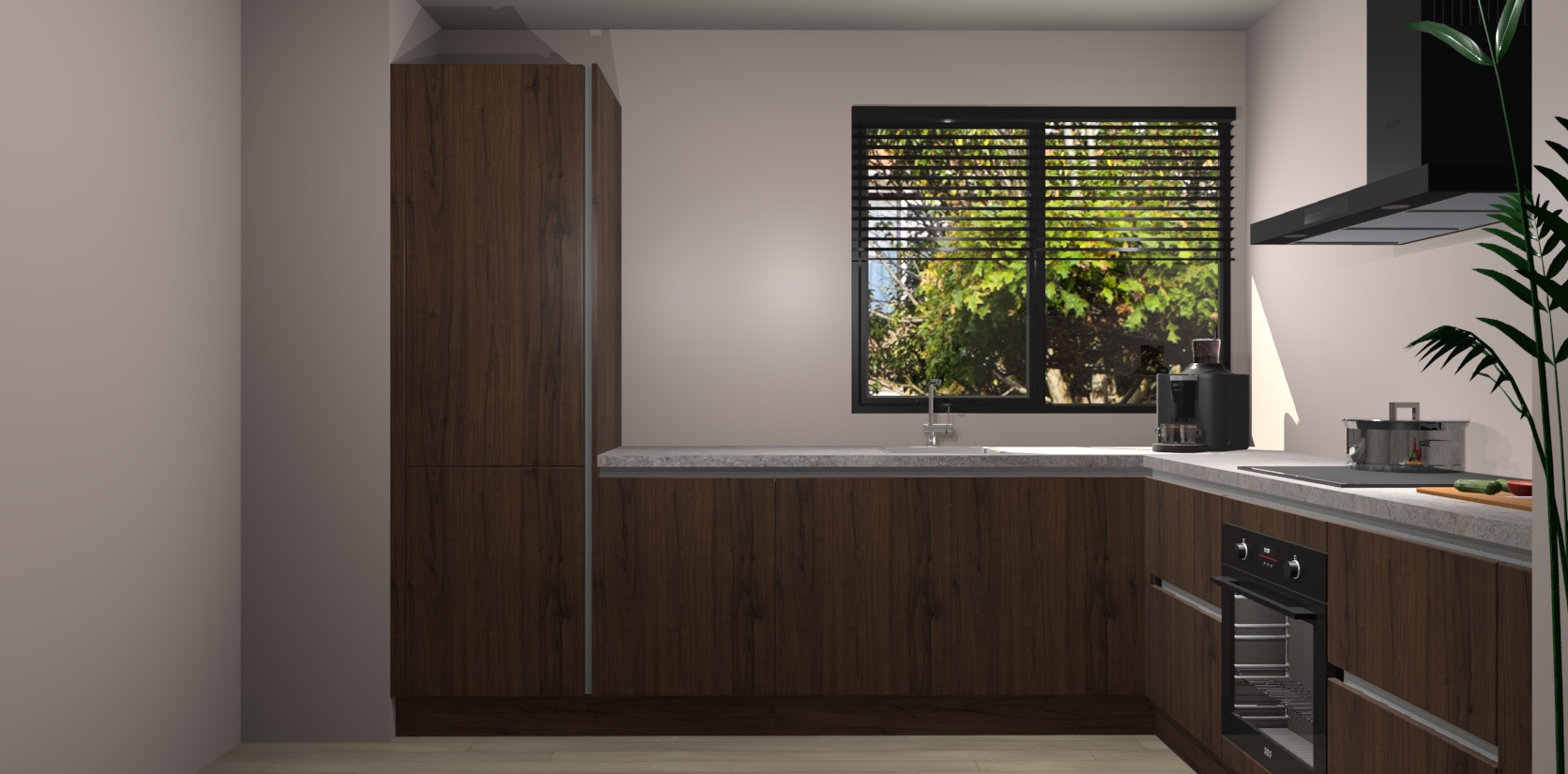 Wij presenteren de revolutie in keukens: de Noten greeploze keuken Benidorm. Met modern design, een tijdloos uiterlijk en kasten die al voor gemonteerd worden geleverd, laat deze stijlvolle keuken uw kookervaring op een hele nieuwe manier transformeren.