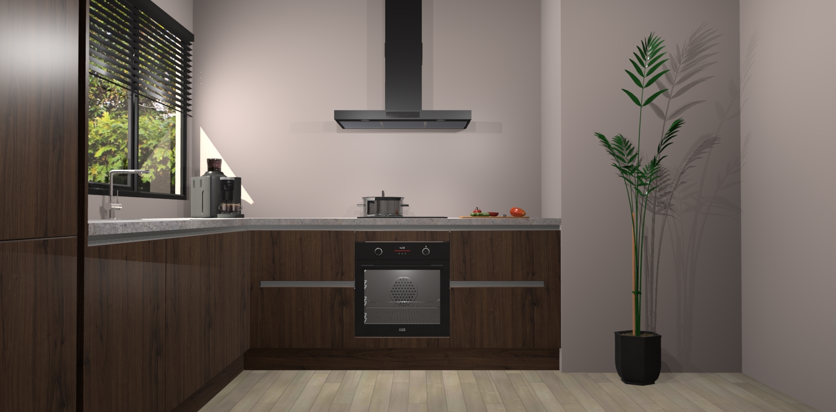 Met een modern, tijdloos design en ruime opslagruimte, zult u zich in no-time thuis voelen in uw nieuwe keuken. Uw leven wordt eenvoudiger met de soft-close deuren die voor het ultieme stille comfort zorgen - geen geluid dat u stoort terwijl u kookt. Ook is de keuken voorzien van 5 ingebouwde apparaten: een oven, inductie kookplaat, afzuigkap, vaatwasser en koelkast. Deze kunnen gemakkelijk na bestelling worden bijgewerkt naar AEG - waardoor uw luxe ervaring compleet is.
