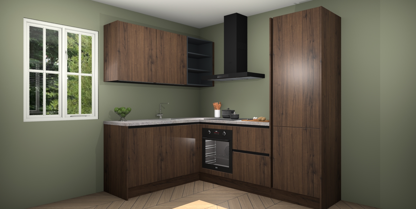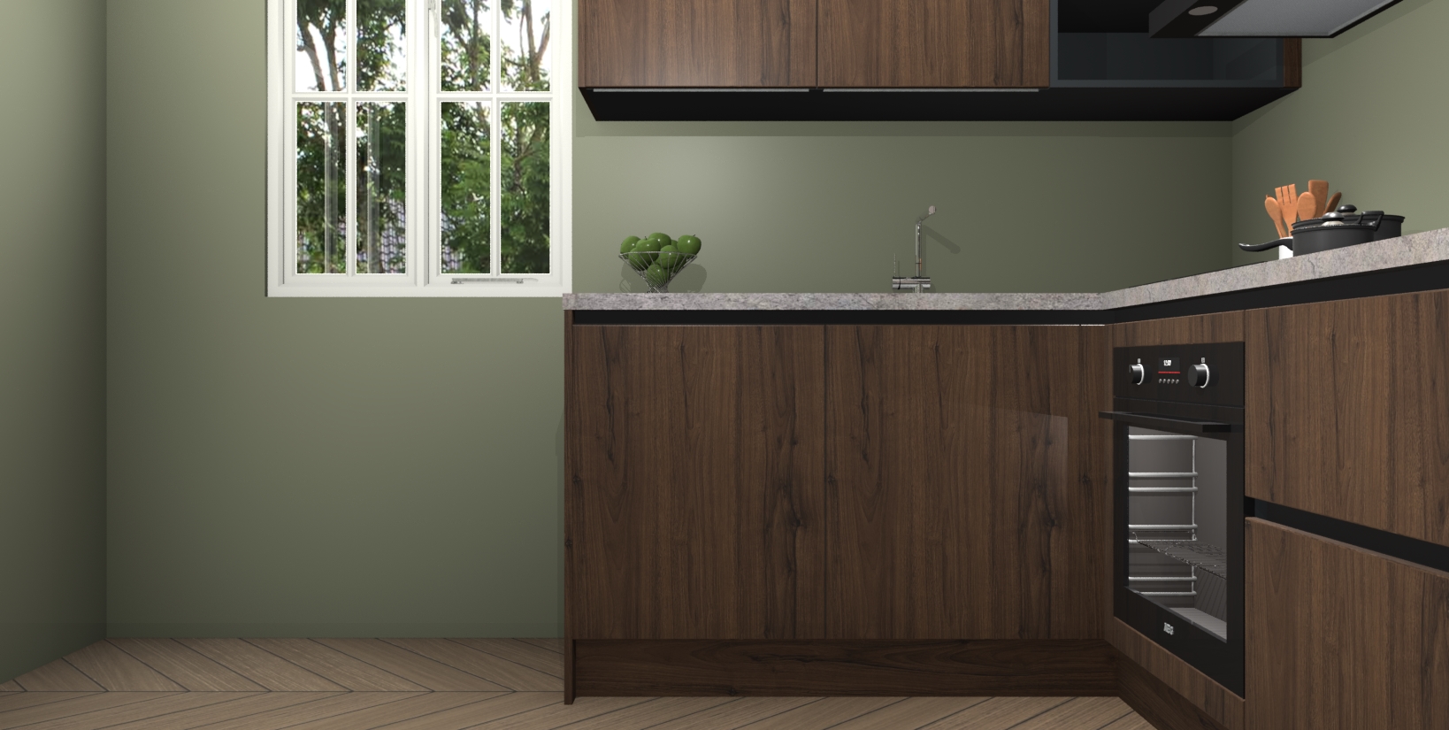 Maak kennis met de Noten greeploze keuken Boekarest, een moderne hoekkeuken waar al uw vrienden en familie jaloers op zullen zijn! Het verbluffende mooie ontwerp past in elk interieur en is een ideale keuze voor wie op zoek is naar een klassieke, maar verfijnde look.