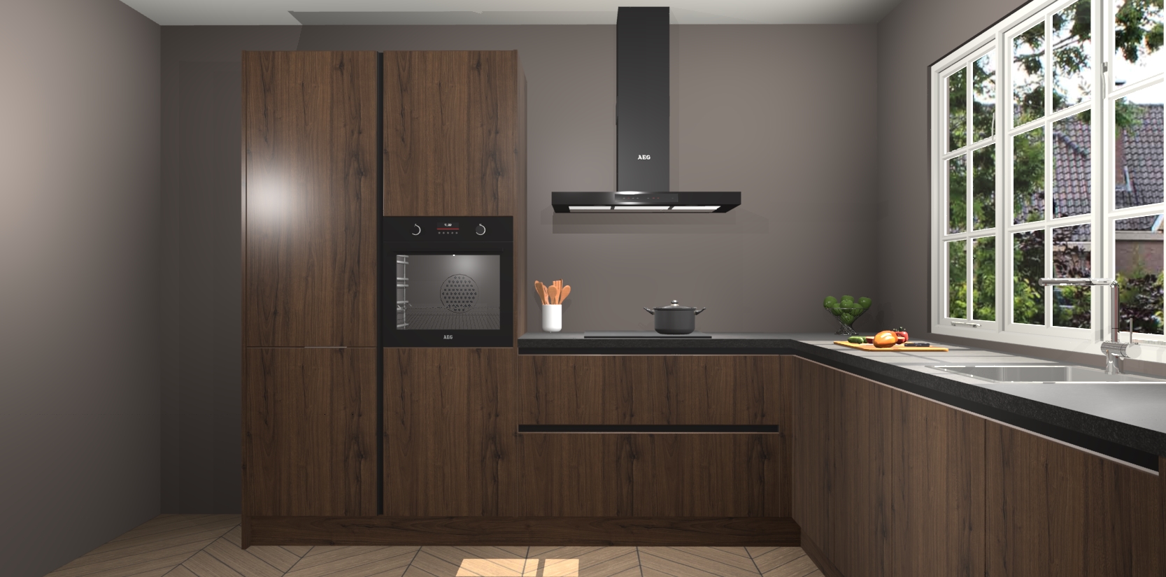 De keuken heeft veel opbergruimte, waardoor u alle ingrediënten gemakkelijk bereikbaar hebt staan. En daarnaast bevat deze volledig uitgeruste keuken ook 5 ingebouwde apparaten: een oven, inductiekookplaat, afzuigkap, vaatwasser en koelkast. Deze zijn heel eenvoudig na bestellen te upgraden naar AEG als u dit wilt. Bovendien zijn de softclose-kastdeuren ideaal; geef ze gewoon even een tikje en ze sluiten automatisch met geruisloze precisie.