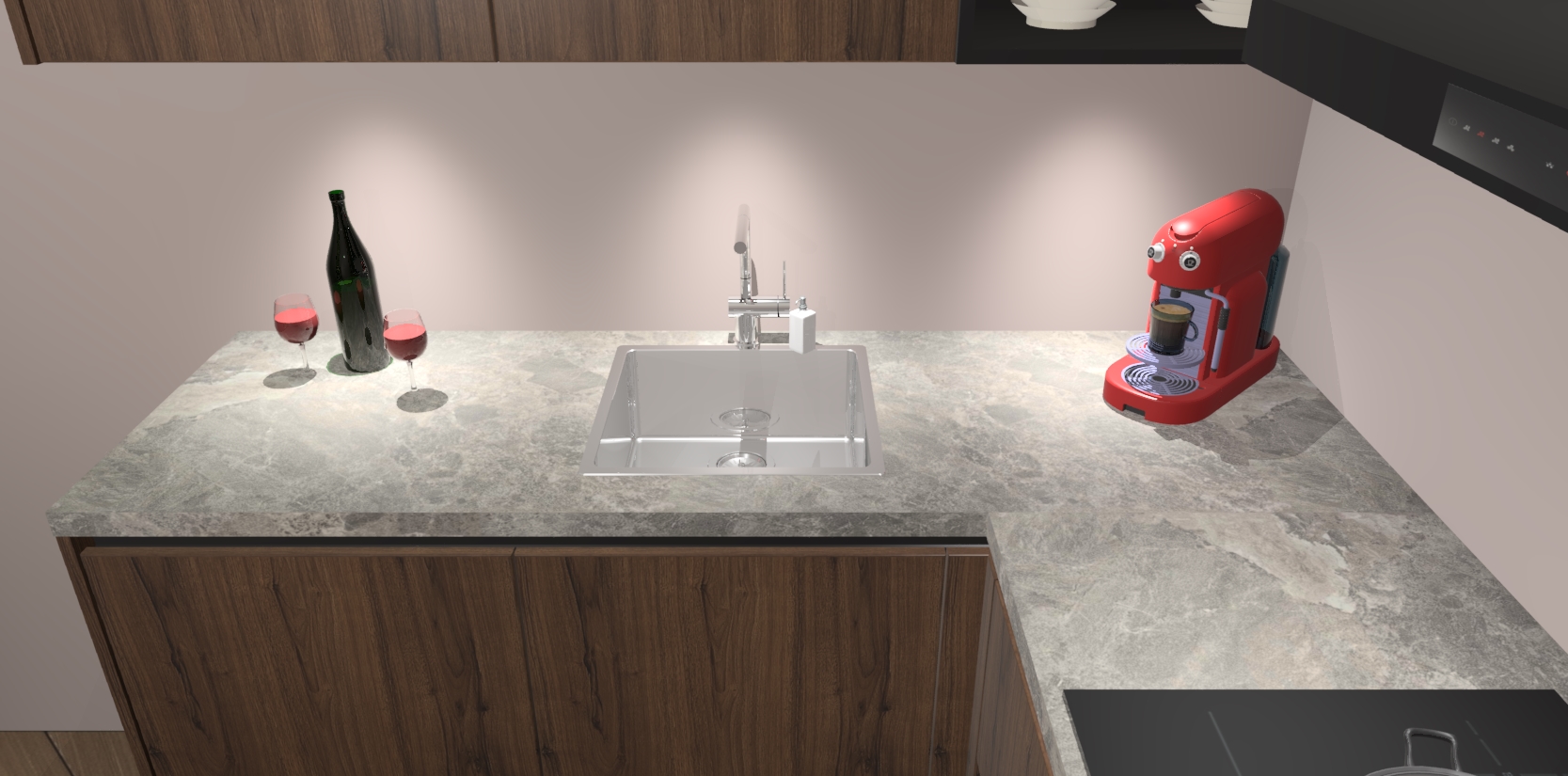 - Bij een hoekwerkblad zijn de hoeken in gevreesd en op maat gemaakt