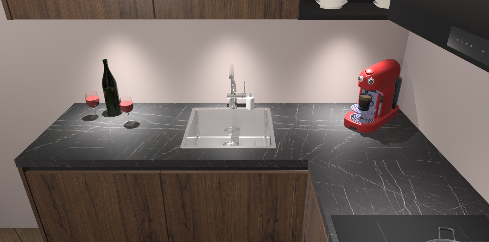 - Bij een hoekwerkblad zijn de hoeken in gevreesd en op maat gemaakt