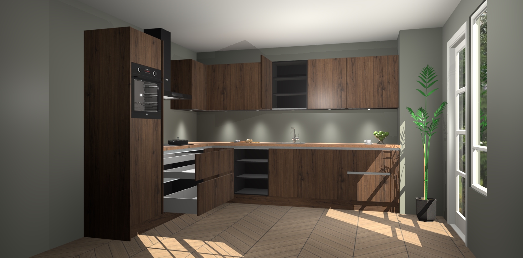 Als u op zoek bent naar de perfecte keuken om uw huis mee op te fleuren, zoek dan niet verder dan de Noten greeploze keuken Debar. Deze prachtige hoekkeuken straalt warmte en luxe uit met een modern maar geraffineerd design. Maak u nooit meer zorgen of u wel genoeg opbergruimte heeft; dit meubel biedt voldoende opbergruimte om al uw keukenbenodigdheden binnen handbereik te houden.