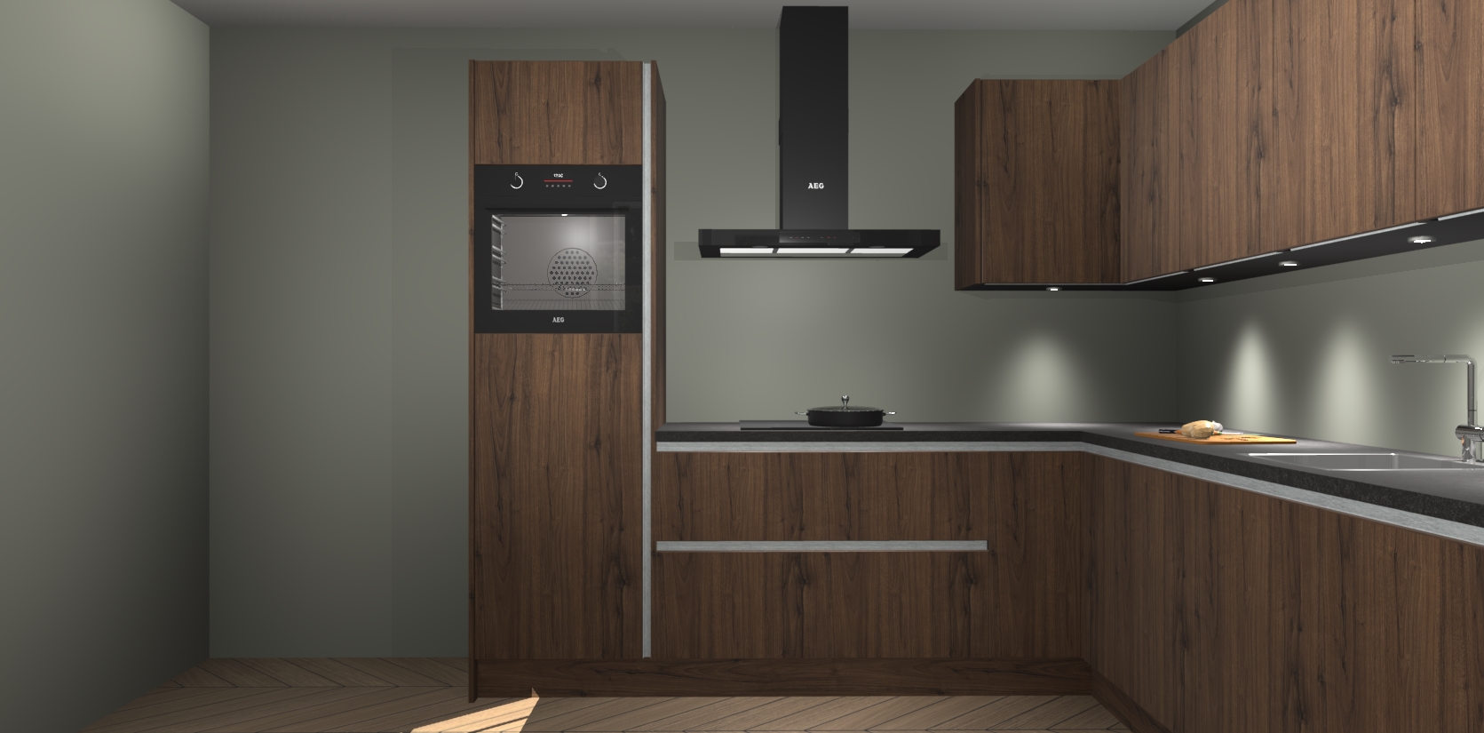 De Noten greeploze keuken Debar is uitgerust met vijf inbouwapparaten die elke kooktaak handig en efficiënt maken. Een oven, inductiekookplaat, afzuigkap, vaatwasser en koelkast zijn standaard, maar kunnen na bestelling eenvoudig worden geupgrade naar AEG. Profiteer vervolgens van de softclose deuren voor snelle toegang en geruisloze toegang.
