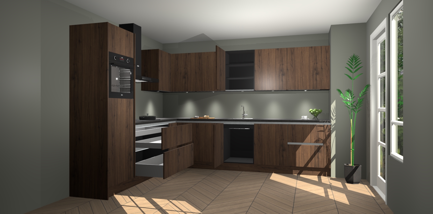 Als u op zoek bent naar de perfecte keuken om uw huis mee op te fleuren, zoek dan niet verder dan de Noten greeploze keuken Debar. Deze prachtige hoekkeuken straalt warmte en luxe uit met een modern maar geraffineerd design. Maak u nooit meer zorgen of u wel genoeg opbergruimte heeft; dit meubel biedt voldoende opbergruimte om al uw keukenbenodigdheden binnen handbereik te houden.