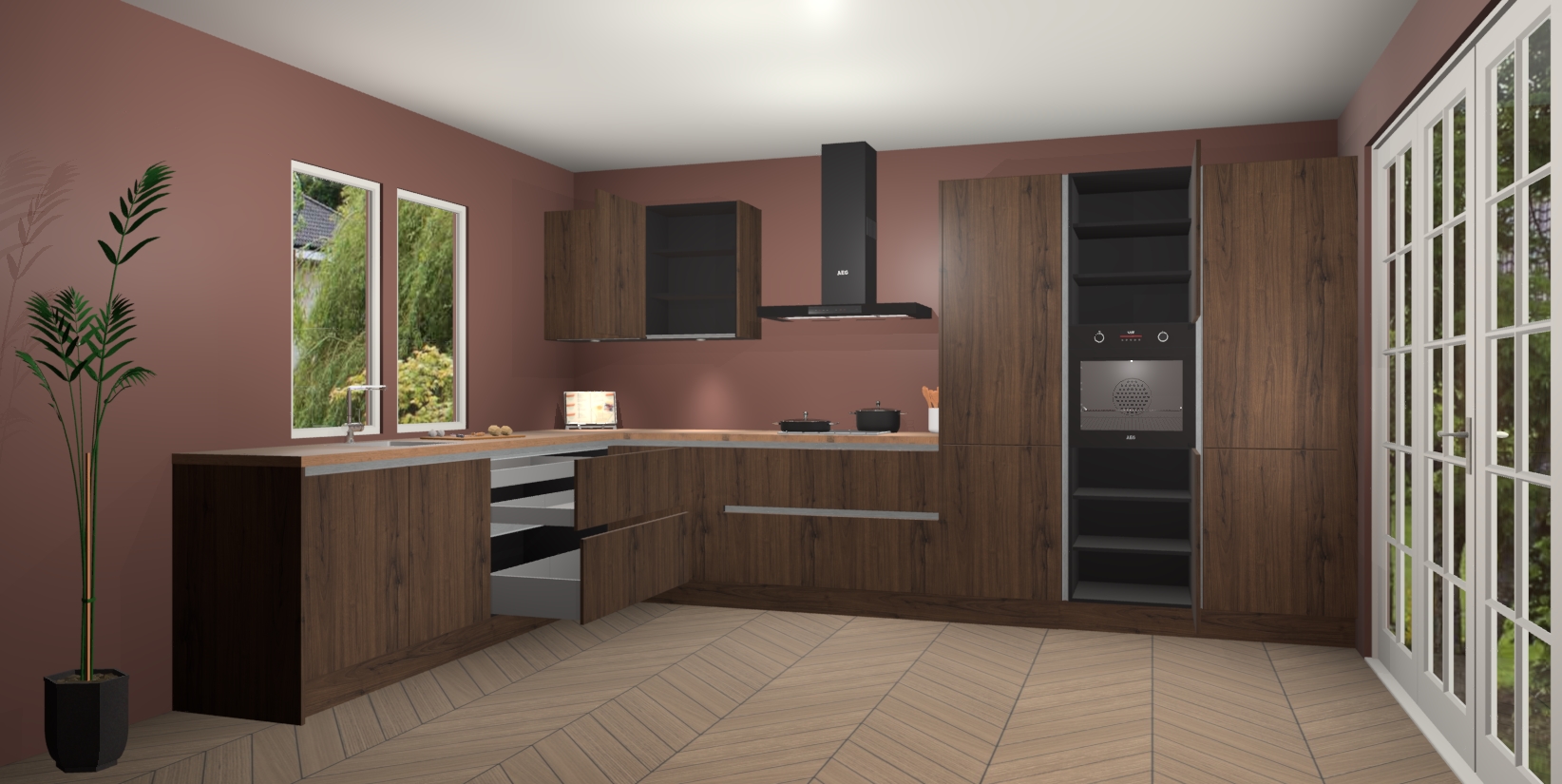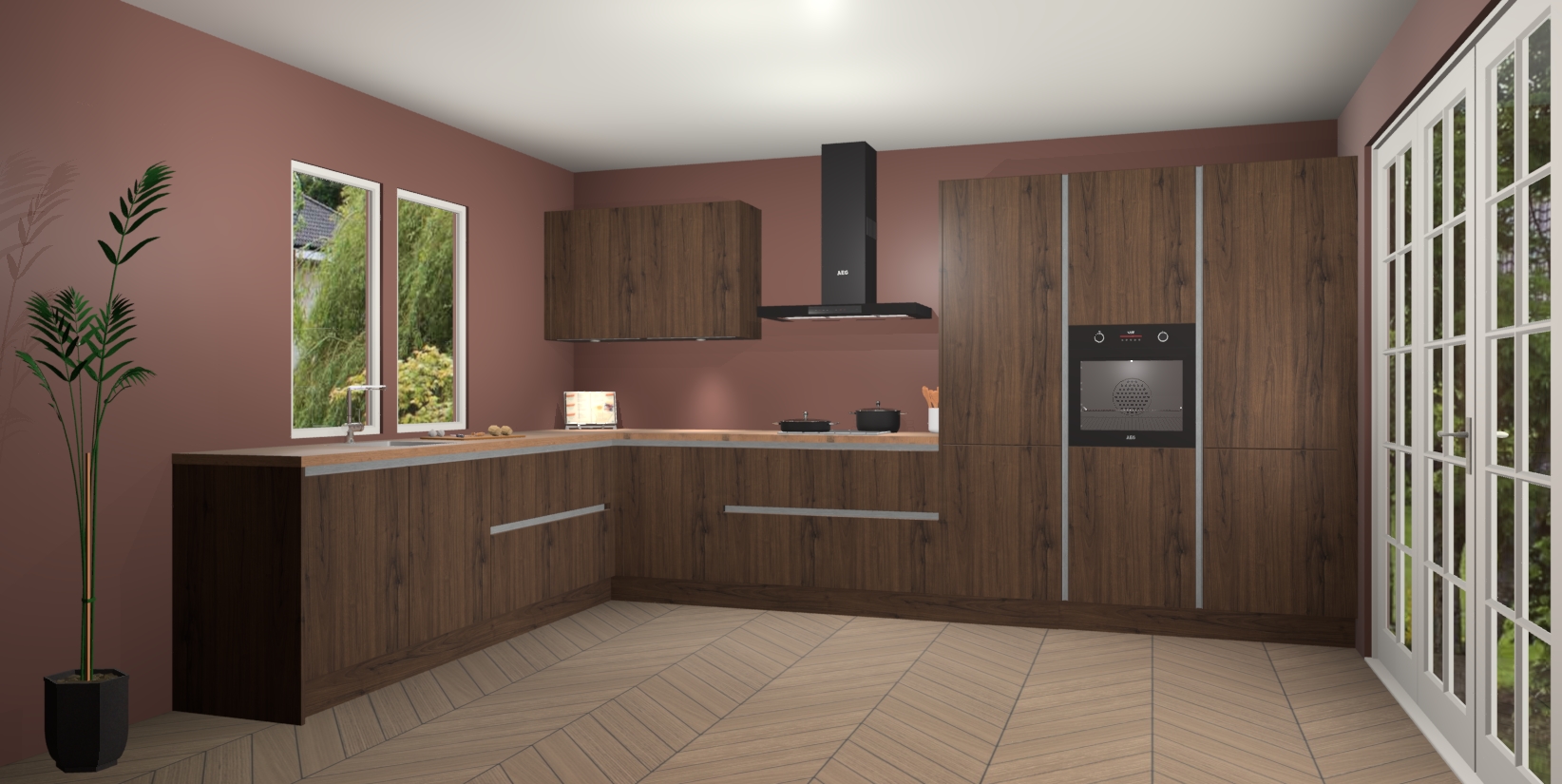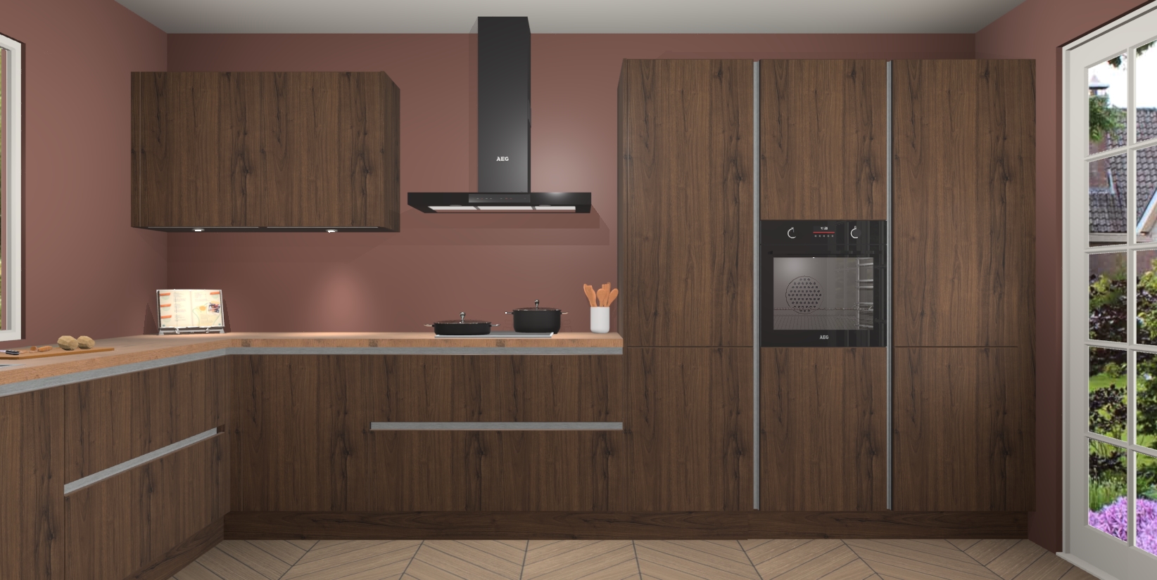 Kom dichtbij de perfecte keuken van uw dromen met de Noten greeploze keuken Debrecen. Met een prachtige houtlook en eigentijds ontwerp, straalt deze keuken warmte en sfeer uit. Of u nu liefhebber bent van traditionele of moderne stijlen, er is genoeg ruimte om aan al uw behoeften te voldoen.