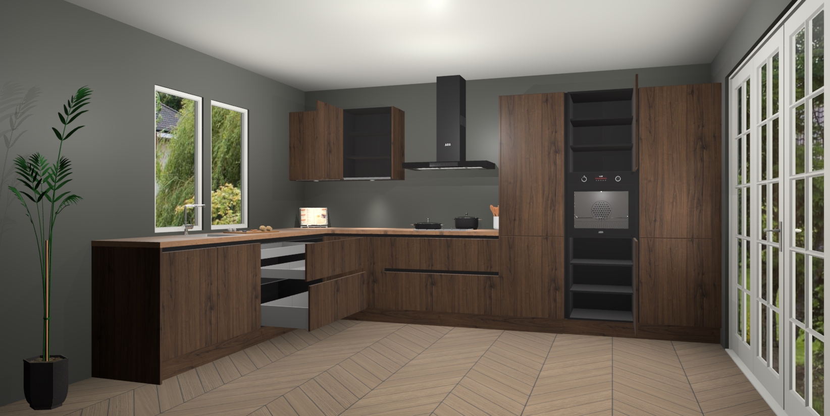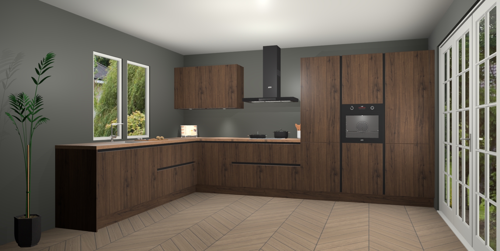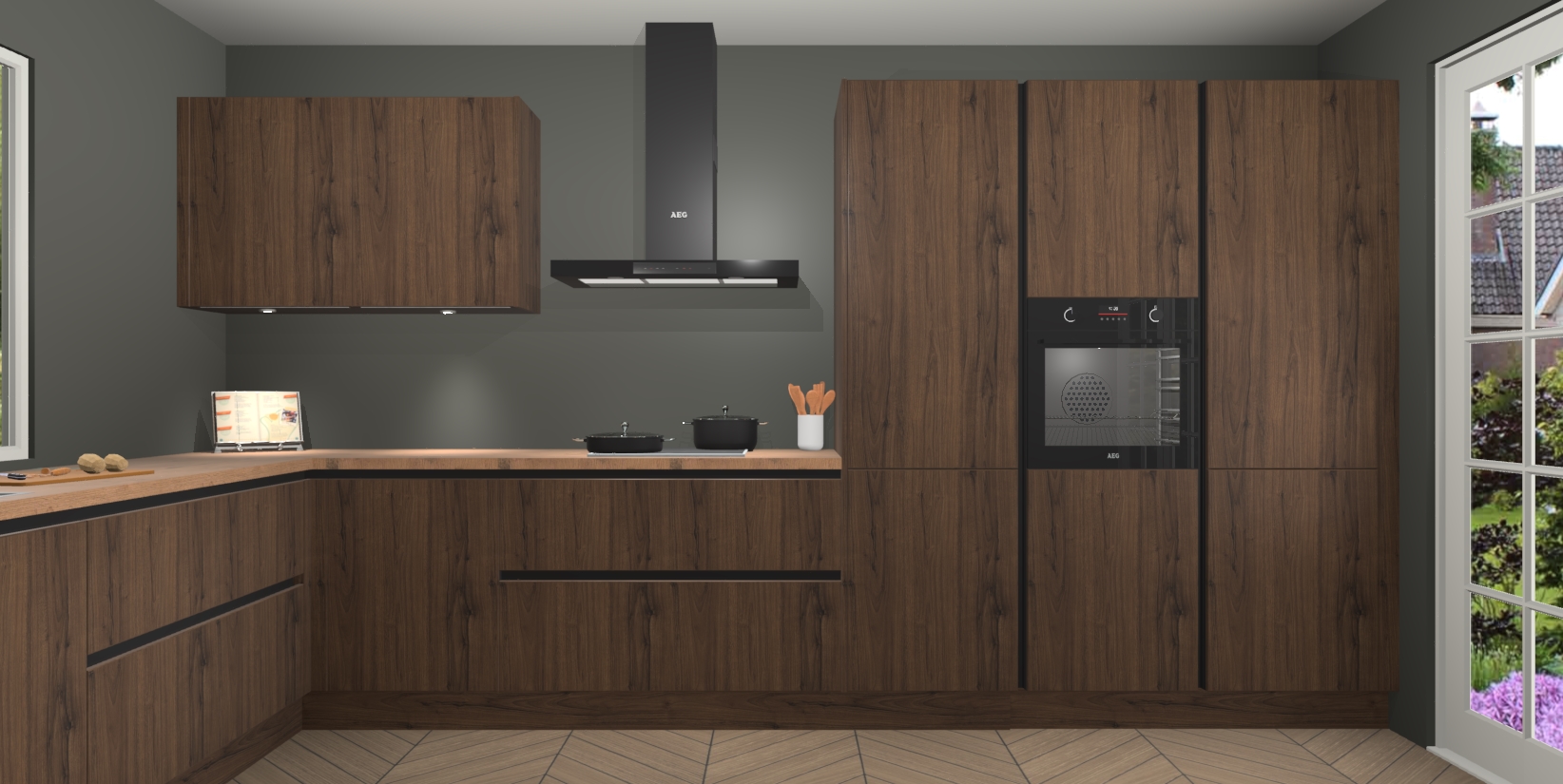 Kom dichtbij de perfecte keuken van uw dromen met de Noten greeploze keuken Debrecen. Met een prachtige houtlook en eigentijds ontwerp, straalt deze keuken warmte en sfeer uit. Of u nu liefhebber bent van traditionele of moderne stijlen, er is genoeg ruimte om aan al uw behoeften te voldoen.