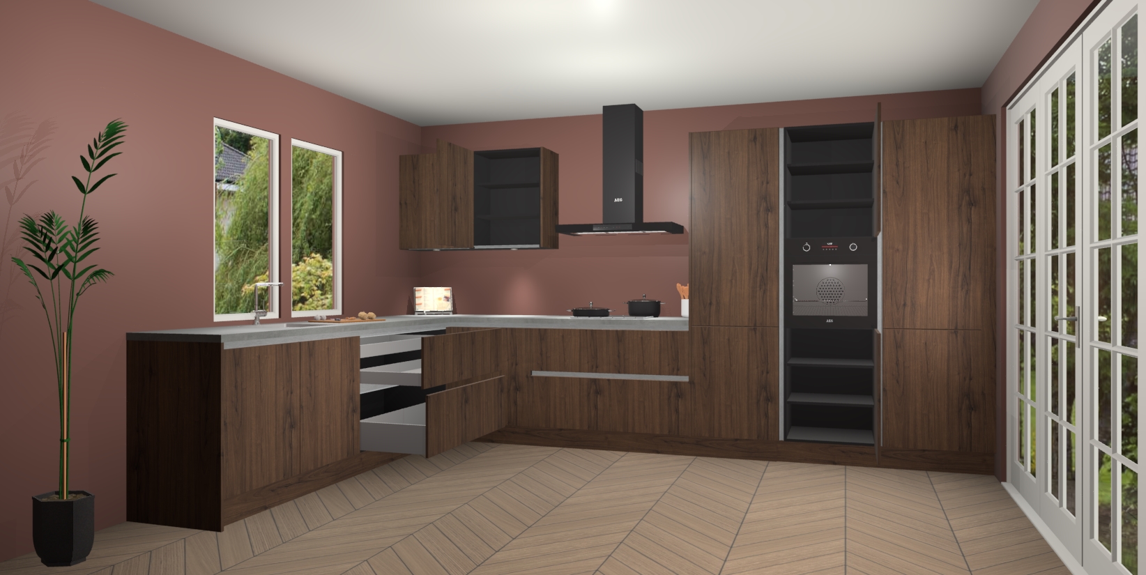 Heeft u nog apparatuur nodig? Geen probleem: de Noten greeploze keuken Debrecen bevat vijf ingebouwde apparaten - een oven, inductiekookplaat, afzuigkap, vaatwasser en koelkast - die gemakkelijk kunnen worden bijgewerkt naar AEG na bestelling. En als dat nog niet genoeg is; onze kasten worden pre-geassembleerd geleverd en zijn verkrijgbaar tegen een vastgeroeste lage prijs! U hoeft nooit meer te zoeken naar goede kwaliteit en service want onze producten hebben echt Duitse kwaliteit.