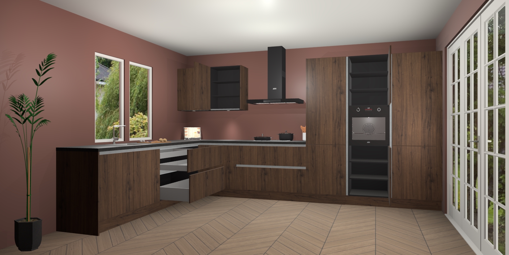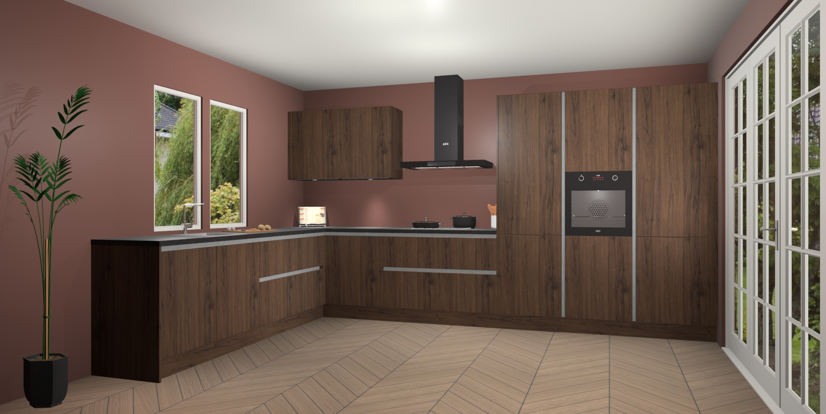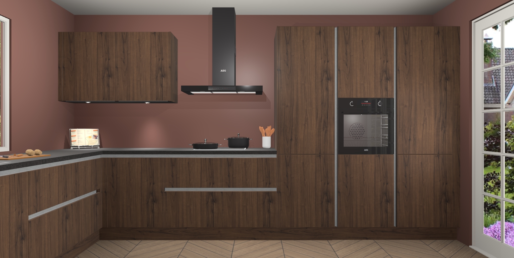 Kom dichtbij de perfecte keuken van uw dromen met de Noten greeploze keuken Debrecen. Met een prachtige houtlook en eigentijds ontwerp, straalt deze keuken warmte en sfeer uit. Of u nu liefhebber bent van traditionele of moderne stijlen, er is genoeg ruimte om aan al uw behoeften te voldoen.