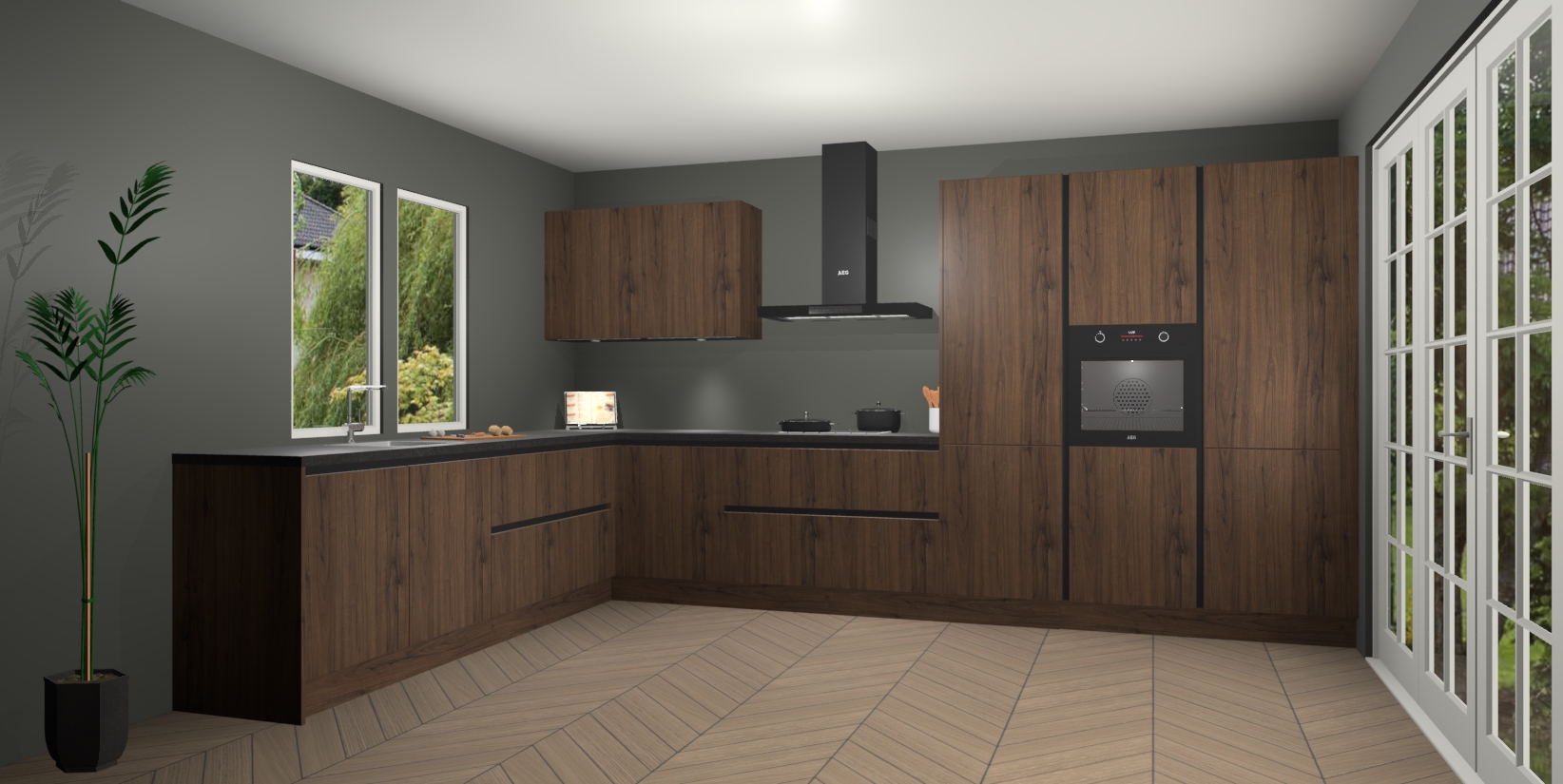 Kom dichtbij de perfecte keuken van uw dromen met de Noten greeploze keuken Debrecen. Met een prachtige houtlook en eigentijds ontwerp, straalt deze keuken warmte en sfeer uit. Of u nu liefhebber bent van traditionele of moderne stijlen, er is genoeg ruimte om aan al uw behoeften te voldoen.