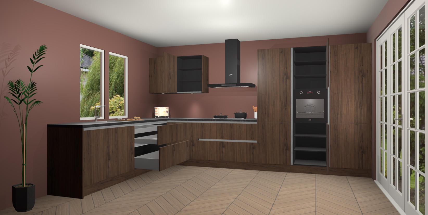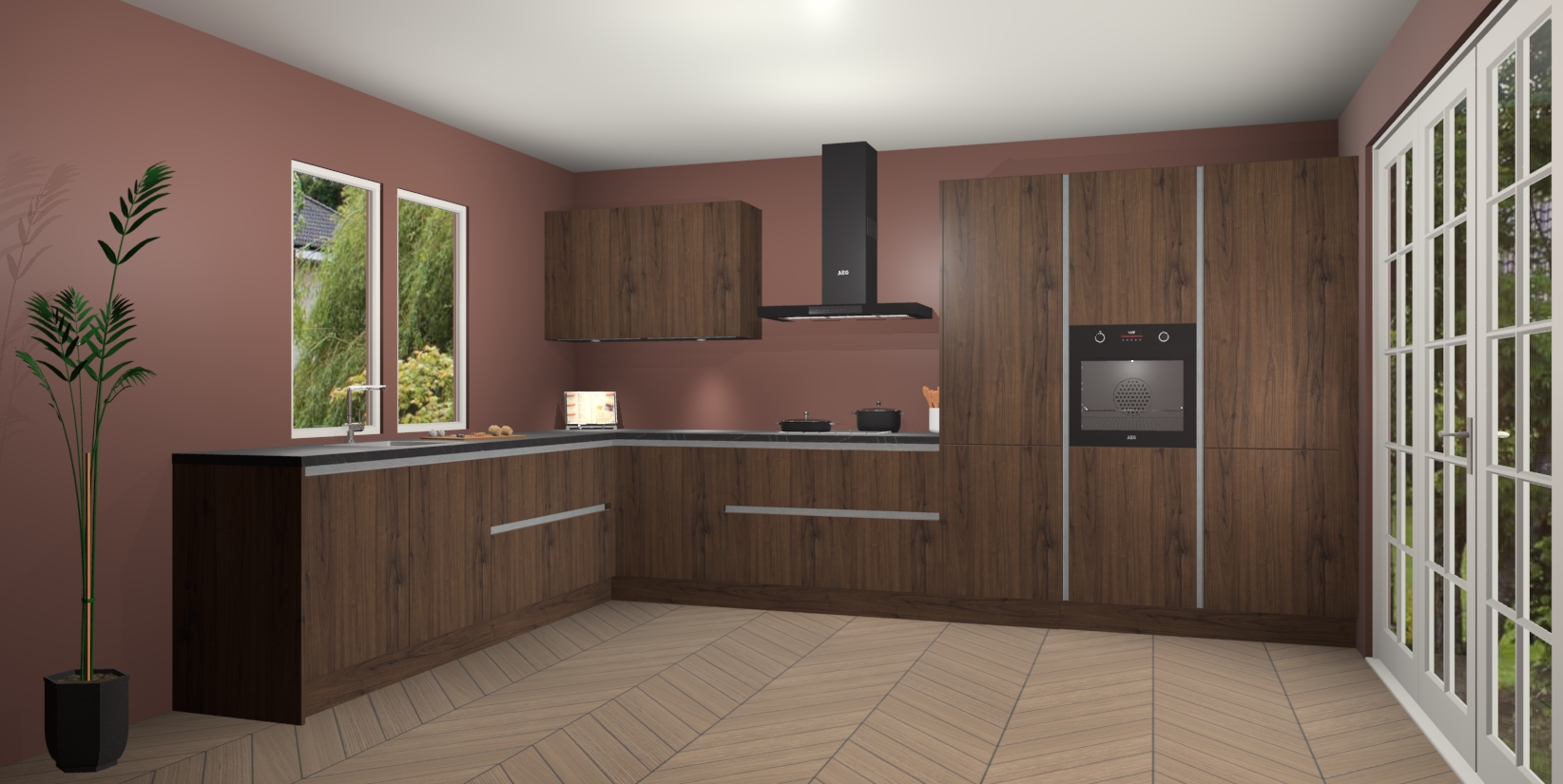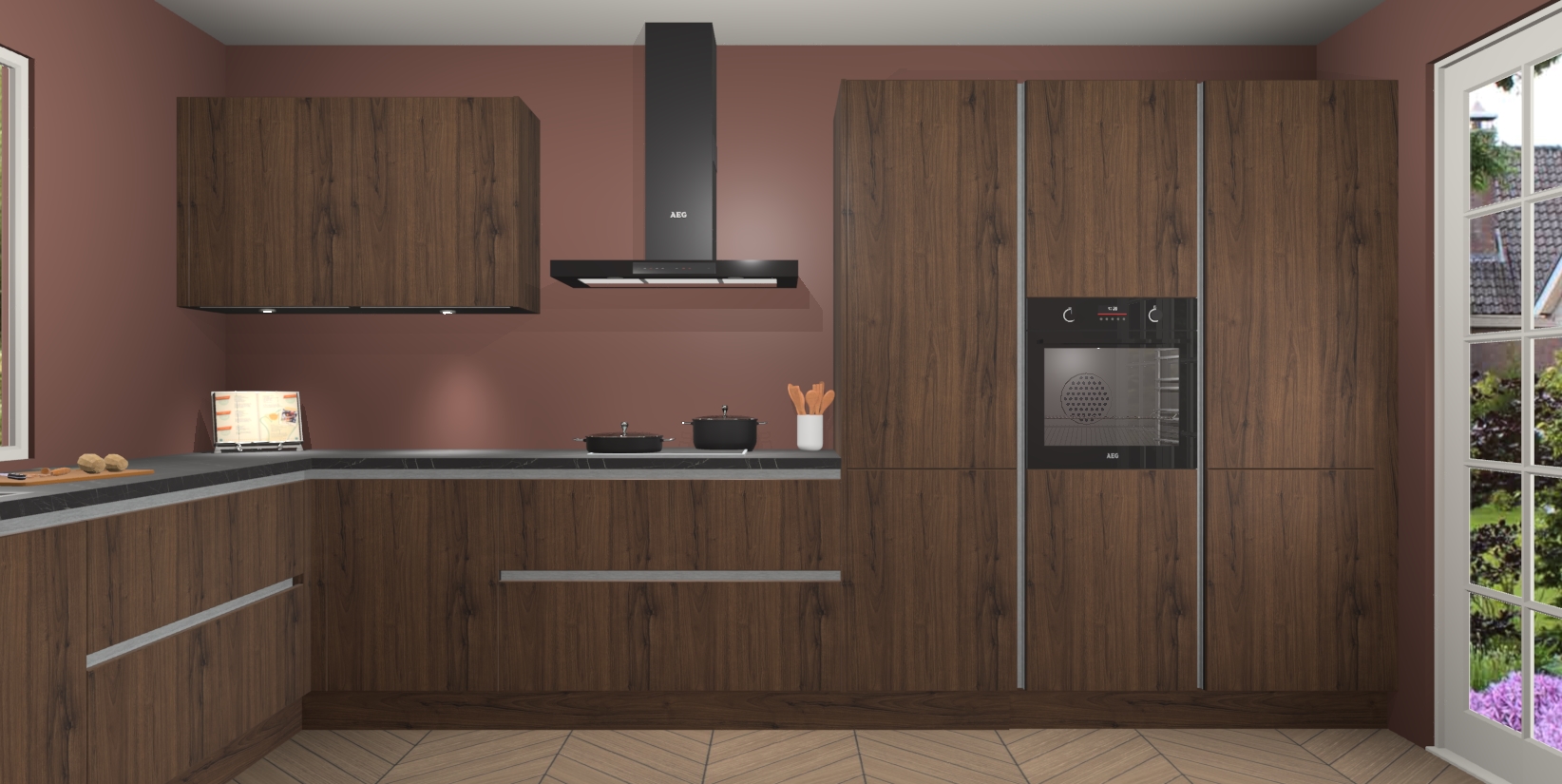 Kom dichtbij de perfecte keuken van uw dromen met de Noten greeploze keuken Debrecen. Met een prachtige houtlook en eigentijds ontwerp, straalt deze keuken warmte en sfeer uit. Of u nu liefhebber bent van traditionele of moderne stijlen, er is genoeg ruimte om aan al uw behoeften te voldoen.
