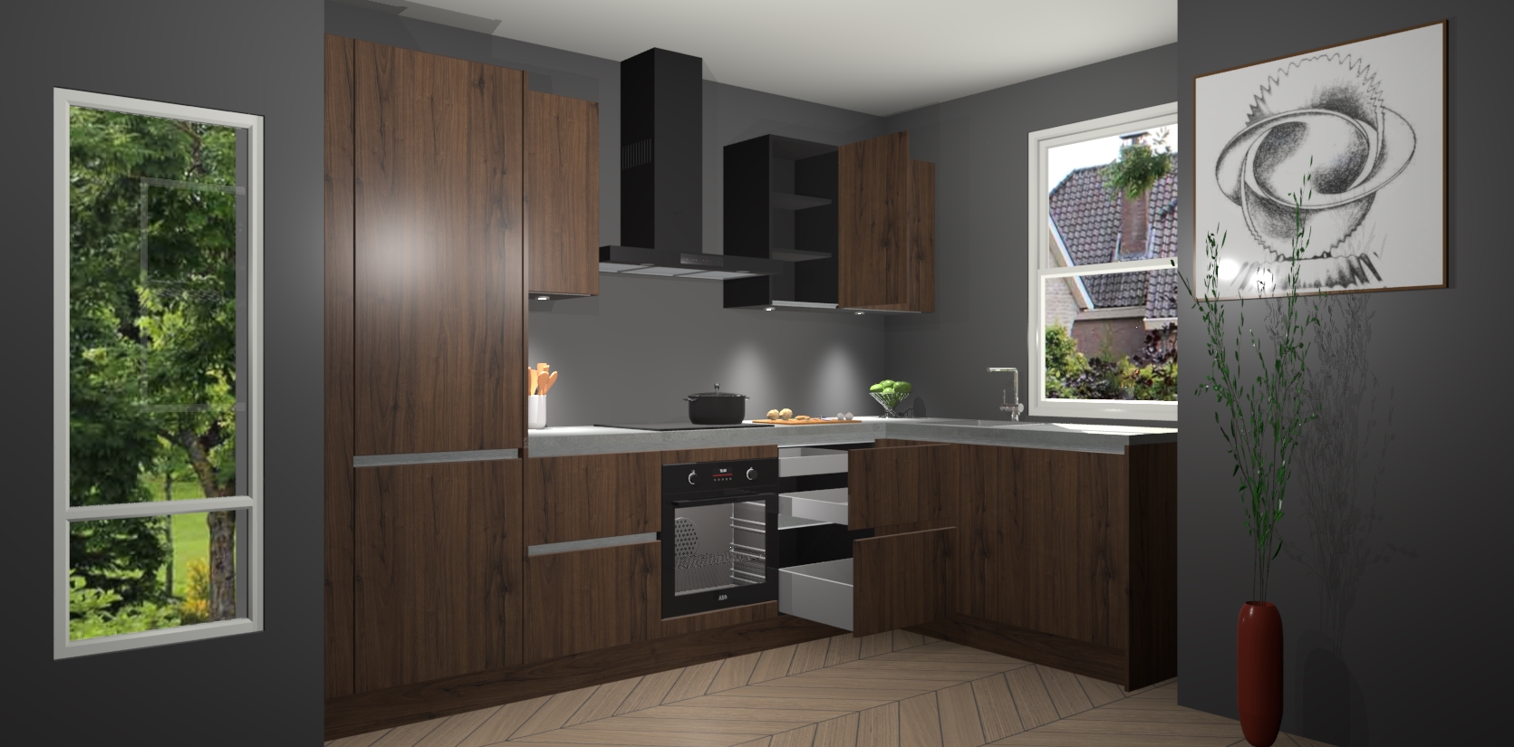 De Noten greeploze keuken Geneve is precies wat u nodig heeft als u op zoek bent naar modern design, versmolten met tijdloze schoonheid. De strakke afwerking voegt klasse toe terwijl het toch een uitnodigende sfeer behoudt; zeker om zowel gasten als uzelf te inspireren om in stijl te gaan koken! En nog beter, het zal uw budget niet breken - dus waarom wachten? Met de Noten greeploze keuken Geneve bent u verzekerd van kwaliteit zonder in te leveren op de prijs!