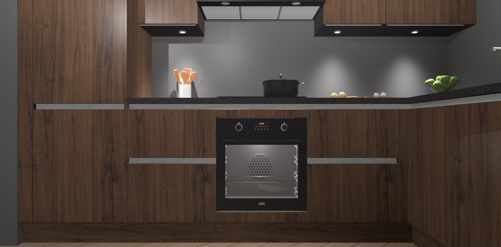 De Noten greeploze keuken Geneve is uitgerust met 5 inbouwapparaten - een oven, inductiekookplaat, afzuigkap, vaatwasser en koelkast - voor al uw kook- en bewaarbehoeftes. U kunt deze apparaten desgewenst eenvoudig upgraden naar AEG of de oven omruilen voor een combimagnetron na het plaatsen van uw bestelling. En met de soft close deuren, voldoende opbergruimte en kasten die voorgemonteerd worden geleverd, bent u in een mum van tijd klaar om heerlijke maaltijden te bereiden!