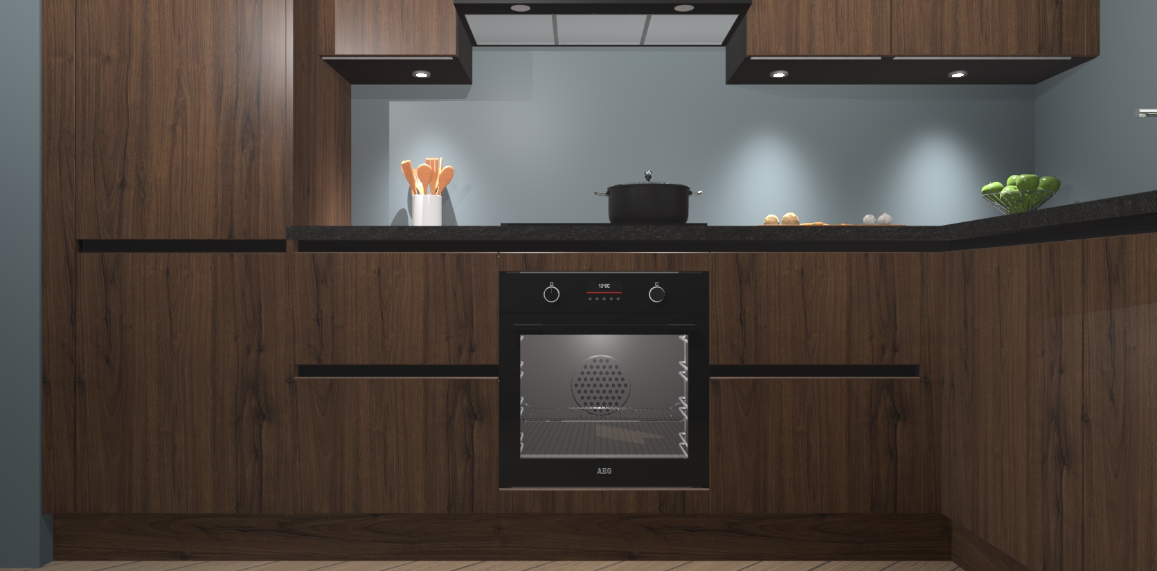 De Noten greeploze keuken Geneve is uitgerust met 5 inbouwapparaten - een oven, inductiekookplaat, afzuigkap, vaatwasser en koelkast - voor al uw kook- en bewaarbehoeftes. U kunt deze apparaten desgewenst eenvoudig upgraden naar AEG of de oven omruilen voor een combimagnetron na het plaatsen van uw bestelling. En met de soft close deuren, voldoende opbergruimte en kasten die voorgemonteerd worden geleverd, bent u in een mum van tijd klaar om heerlijke maaltijden te bereiden!