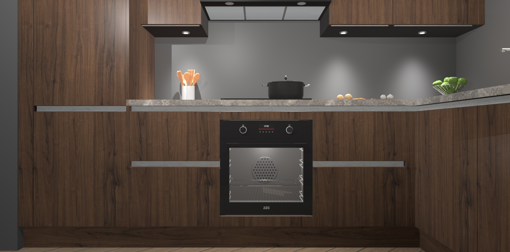 De Noten greeploze keuken Geneve is uitgerust met 5 inbouwapparaten - een oven, inductiekookplaat, afzuigkap, vaatwasser en koelkast - voor al uw kook- en bewaarbehoeftes. U kunt deze apparaten desgewenst eenvoudig upgraden naar AEG of de oven omruilen voor een combimagnetron na het plaatsen van uw bestelling. En met de soft close deuren, voldoende opbergruimte en kasten die voorgemonteerd worden geleverd, bent u in een mum van tijd klaar om heerlijke maaltijden te bereiden!