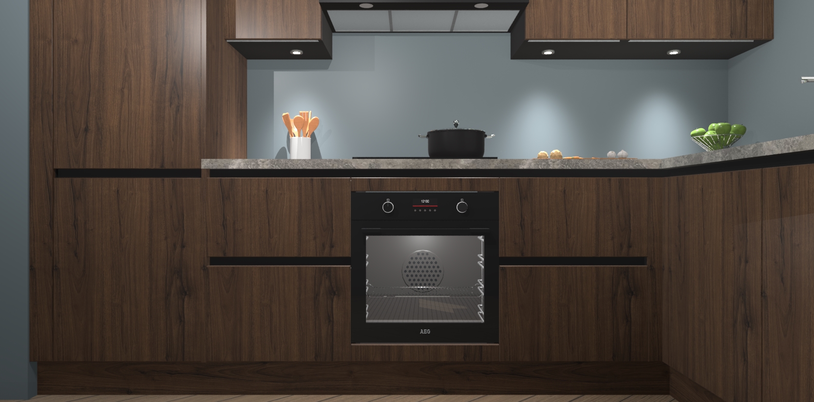 De Noten greeploze keuken Geneve is uitgerust met 5 inbouwapparaten - een oven, inductiekookplaat, afzuigkap, vaatwasser en koelkast - voor al uw kook- en bewaarbehoeftes. U kunt deze apparaten desgewenst eenvoudig upgraden naar AEG of de oven omruilen voor een combimagnetron na het plaatsen van uw bestelling. En met de soft close deuren, voldoende opbergruimte en kasten die voorgemonteerd worden geleverd, bent u in een mum van tijd klaar om heerlijke maaltijden te bereiden!