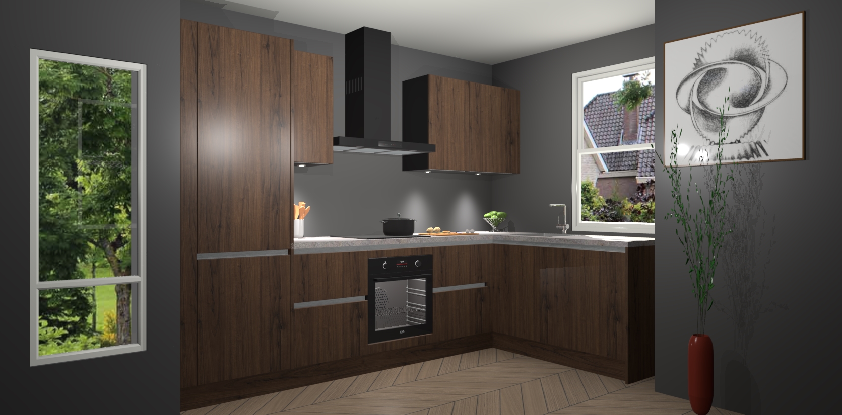 De Noten greeploze keuken Geneve is precies wat u nodig heeft als u op zoek bent naar modern design, versmolten met tijdloze schoonheid. De strakke afwerking voegt klasse toe terwijl het toch een uitnodigende sfeer behoudt; zeker om zowel gasten als uzelf te inspireren om in stijl te gaan koken! En nog beter, het zal uw budget niet breken - dus waarom wachten? Met de Noten greeploze keuken Geneve bent u verzekerd van kwaliteit zonder in te leveren op de prijs!