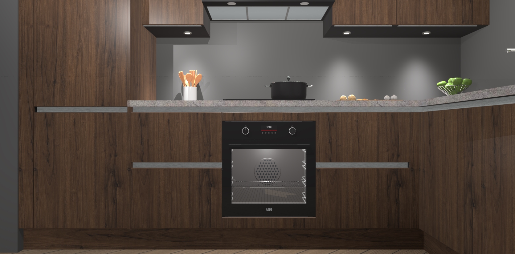 De Noten greeploze keuken Geneve is uitgerust met 5 inbouwapparaten - een oven, inductiekookplaat, afzuigkap, vaatwasser en koelkast - voor al uw kook- en bewaarbehoeftes. U kunt deze apparaten desgewenst eenvoudig upgraden naar AEG of de oven omruilen voor een combimagnetron na het plaatsen van uw bestelling. En met de soft close deuren, voldoende opbergruimte en kasten die voorgemonteerd worden geleverd, bent u in een mum van tijd klaar om heerlijke maaltijden te bereiden!