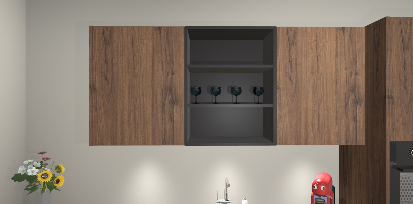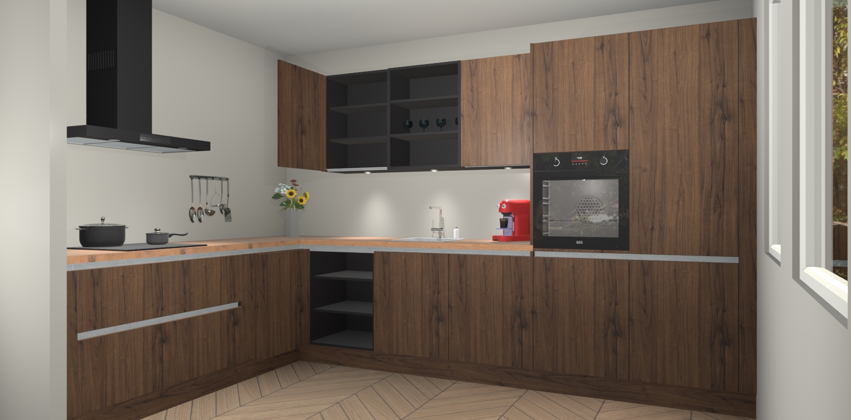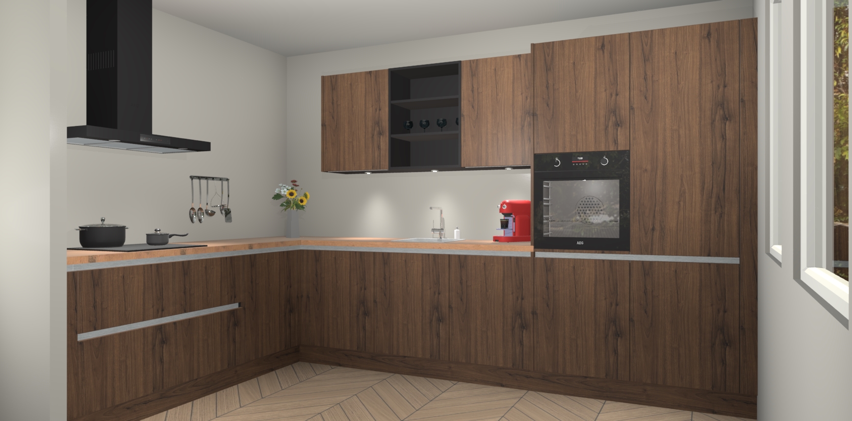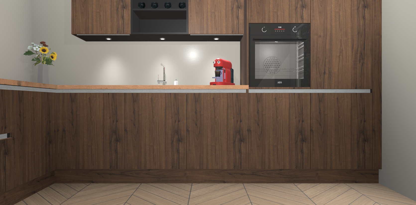 De Noten greeploze keuken Gotenburg is zo ontworpen dat u alle mogelijke vormen van opslagruimte kunt genieten. Bovendien heeft u meteen toegang tot vijf ingebouwde apparaten: een oven, inductiekookplaat, afzuigkap, vaatwasser en koelkast. Gewoon upgraden naar AEG na bestelling? Dit kan heel gemakkelijk worden geregeld. De deuren sluiten zacht dankzij zachtsluitende scharnieren en ze houden warmte vast terwijl ze uitzonderlijk stil blijven wanneer ze worden geopend of gesloten.
