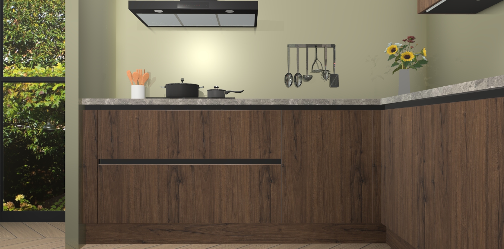 Stelt u zich voor dat u bij thuiskomst wordt begroet door de luxe aanwezigheid van de Noten greeploze keuken Gotenburg, een modern design dat op de eerste plaats staat als het gaat om stijl en functionaliteit! Met hoogwaardige afwerking en elegantie die ongeëvenaard elegant is, brengt deze keuken gezelligheid in uw huis. We zijn er zeker van dat u verrast zult zijn door alle extravagantie die deze keuken te bieden heeft.