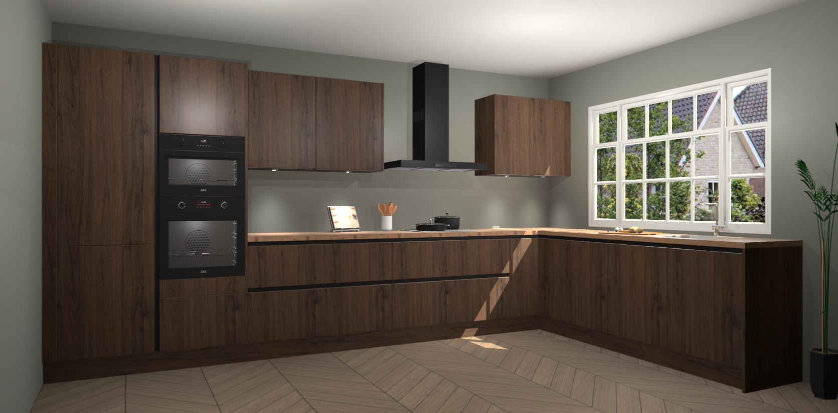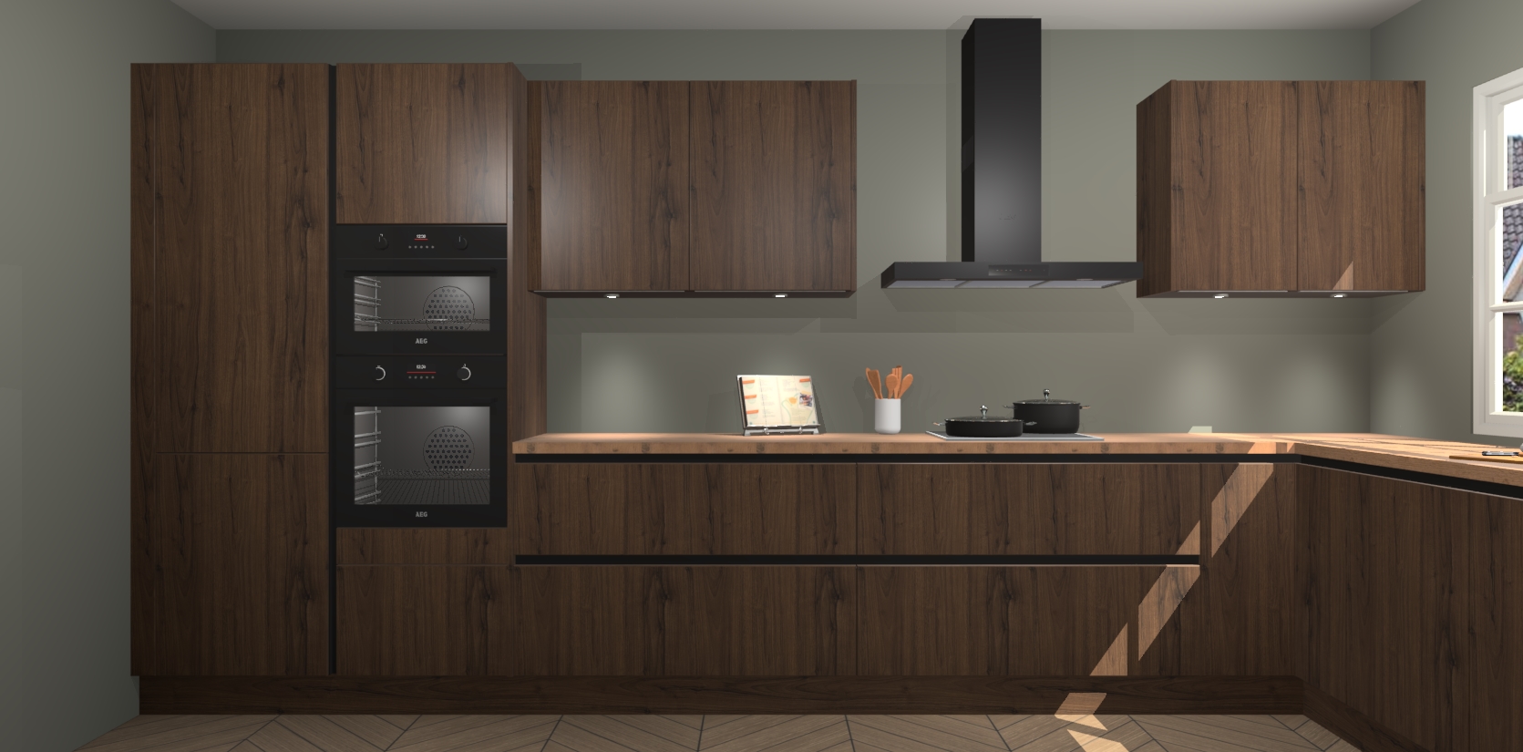 Kom dichtbij de perfecte keuken van uw dromen met de noten greeploze keuken Graz. Met een prachtige houtlook en eigentijds ontwerp, straalt deze keuken warmte en sfeer uit. Of u nu liefhebber bent van traditionele of moderne stijlen, er is genoeg ruimte om aan al uw behoeften te voldoen.