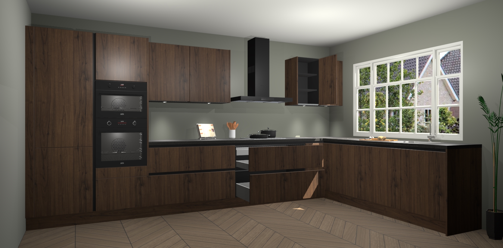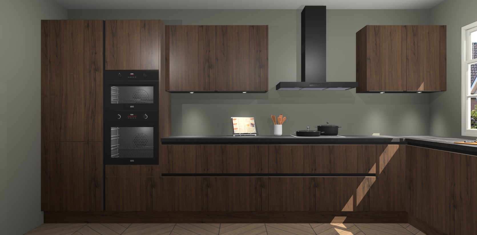 Kom dichtbij de perfecte keuken van uw dromen met de noten greeploze keuken Graz. Met een prachtige houtlook en eigentijds ontwerp, straalt deze keuken warmte en sfeer uit. Of u nu liefhebber bent van traditionele of moderne stijlen, er is genoeg ruimte om aan al uw behoeften te voldoen.