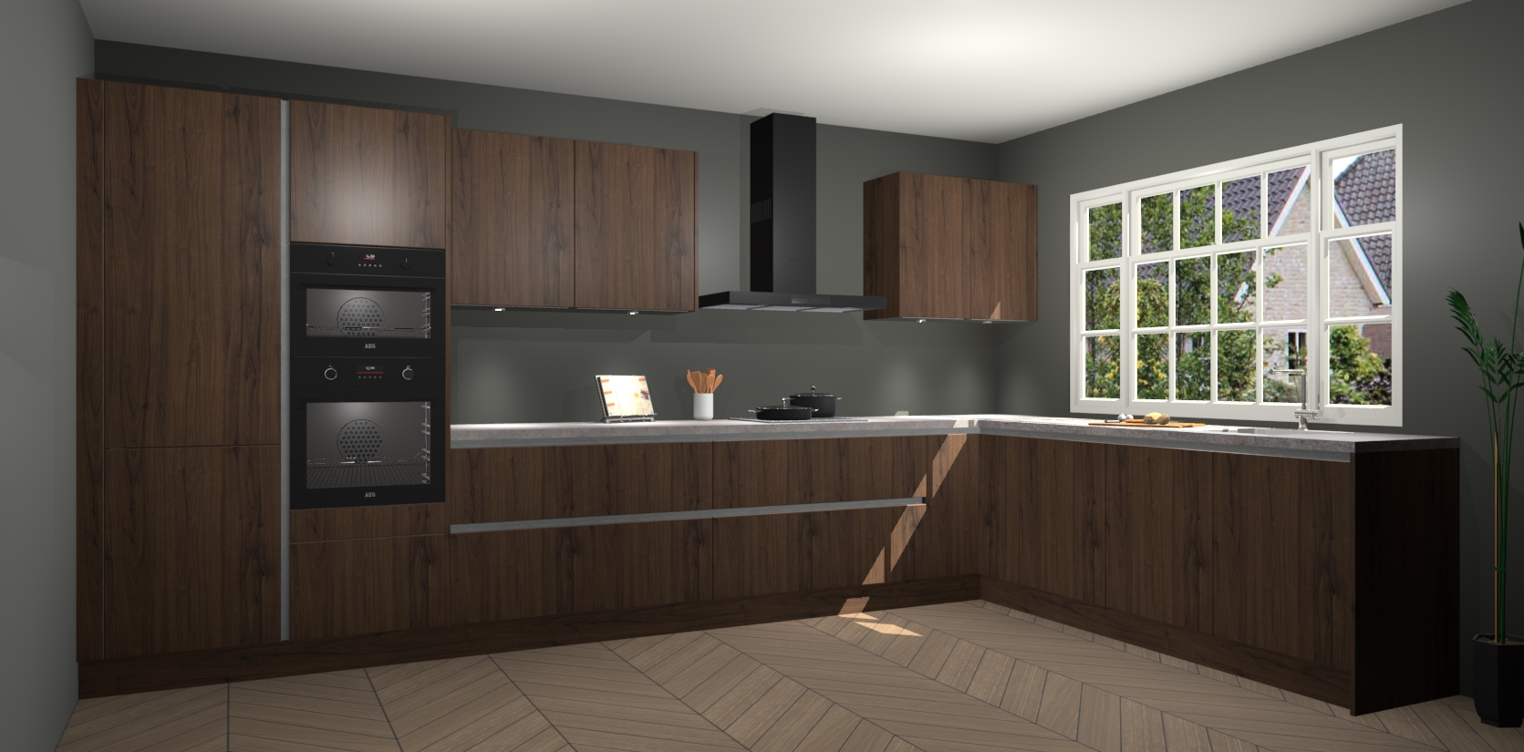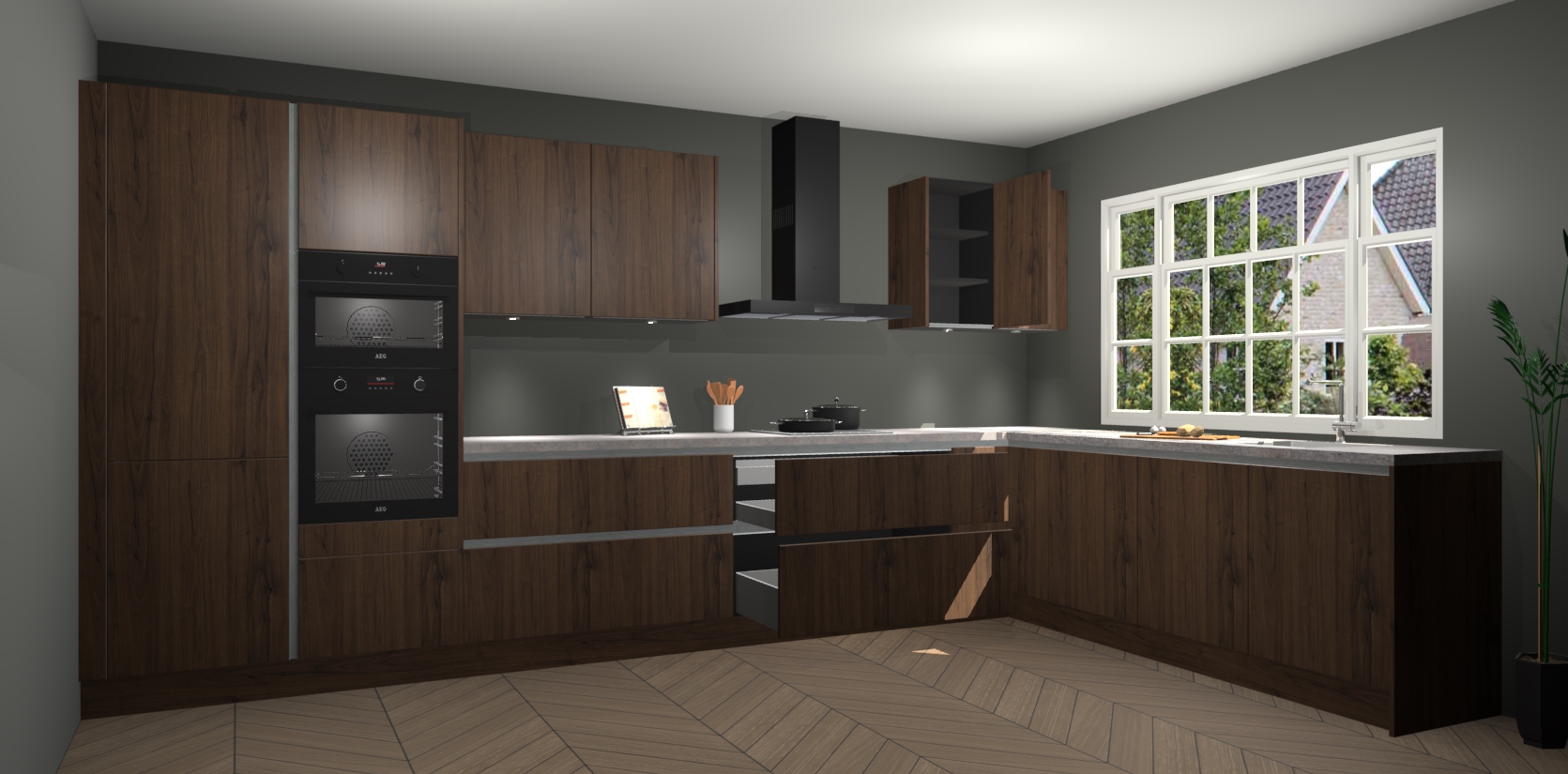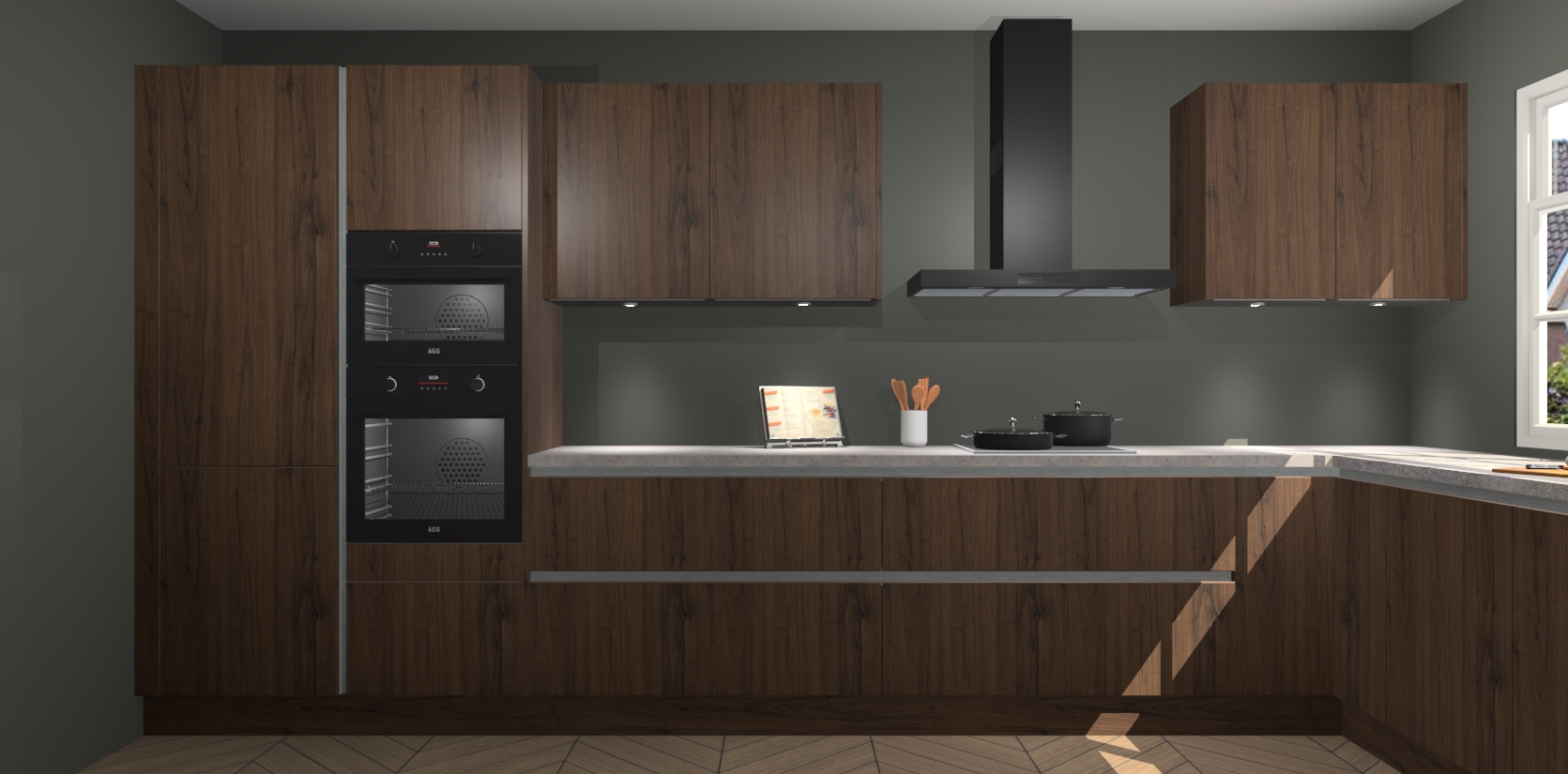 Kom dichtbij de perfecte keuken van uw dromen met de noten greeploze keuken Graz. Met een prachtige houtlook en eigentijds ontwerp, straalt deze keuken warmte en sfeer uit. Of u nu liefhebber bent van traditionele of moderne stijlen, er is genoeg ruimte om aan al uw behoeften te voldoen.