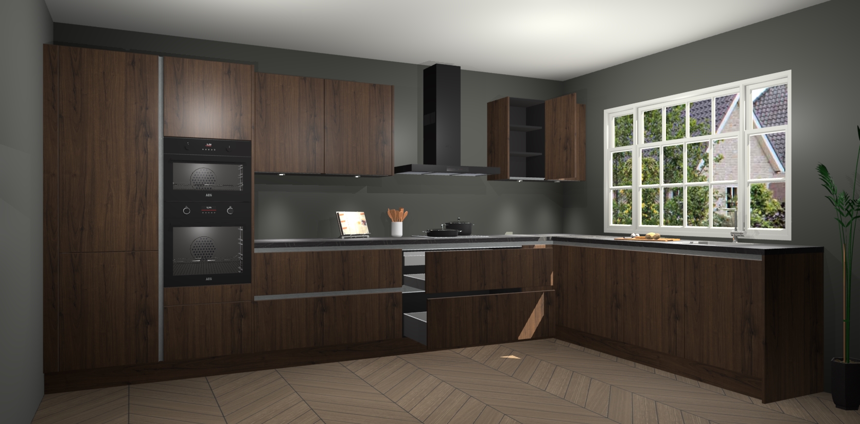 Kom dichtbij de perfecte keuken van uw dromen met de noten greeploze keuken Graz. Met een prachtige houtlook en eigentijds ontwerp, straalt deze keuken warmte en sfeer uit. Of u nu liefhebber bent van traditionele of moderne stijlen, er is genoeg ruimte om aan al uw behoeften te voldoen.