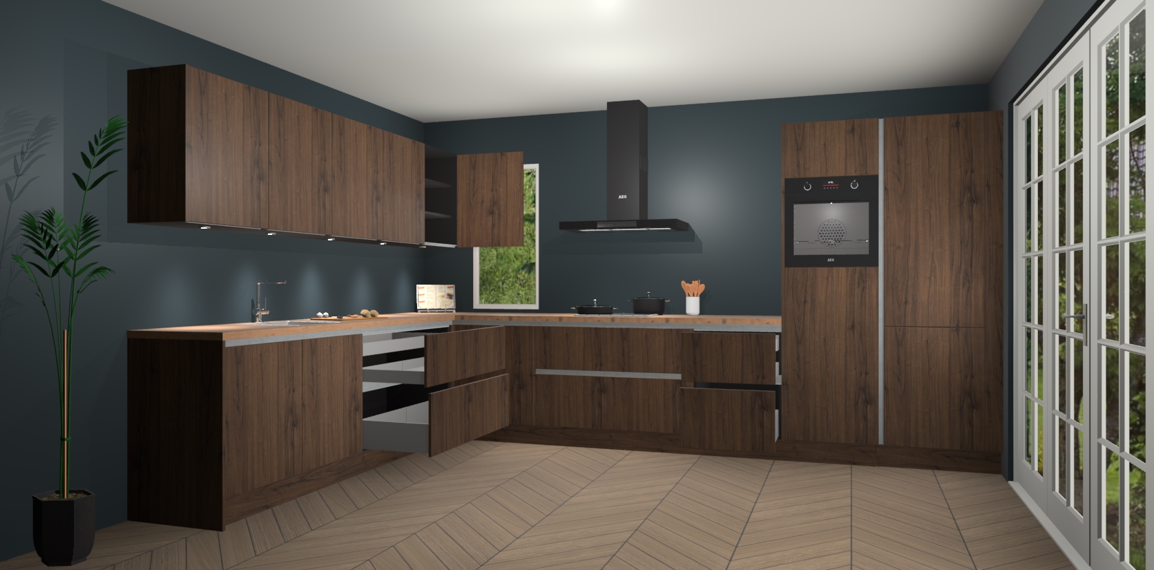 Heeft u nog apparatuur nodig? Geen probleem: de noten greeploze keuken Harare bevat vijf ingebouwde apparaten - een oven, inductiekookplaat, afzuigkap, vaatwasser en koelkast - die gemakkelijk kunnen worden bijgewerkt naar AEG na bestelling. En als dat nog niet genoeg is; onze kasten worden pre-geassembleerd geleverd en zijn verkrijgbaar tegen een vastgeroeste lage prijs! U hoeft nooit meer te zoeken naar goede kwaliteit en service want onze producten hebben echt Duitse kwaliteit.