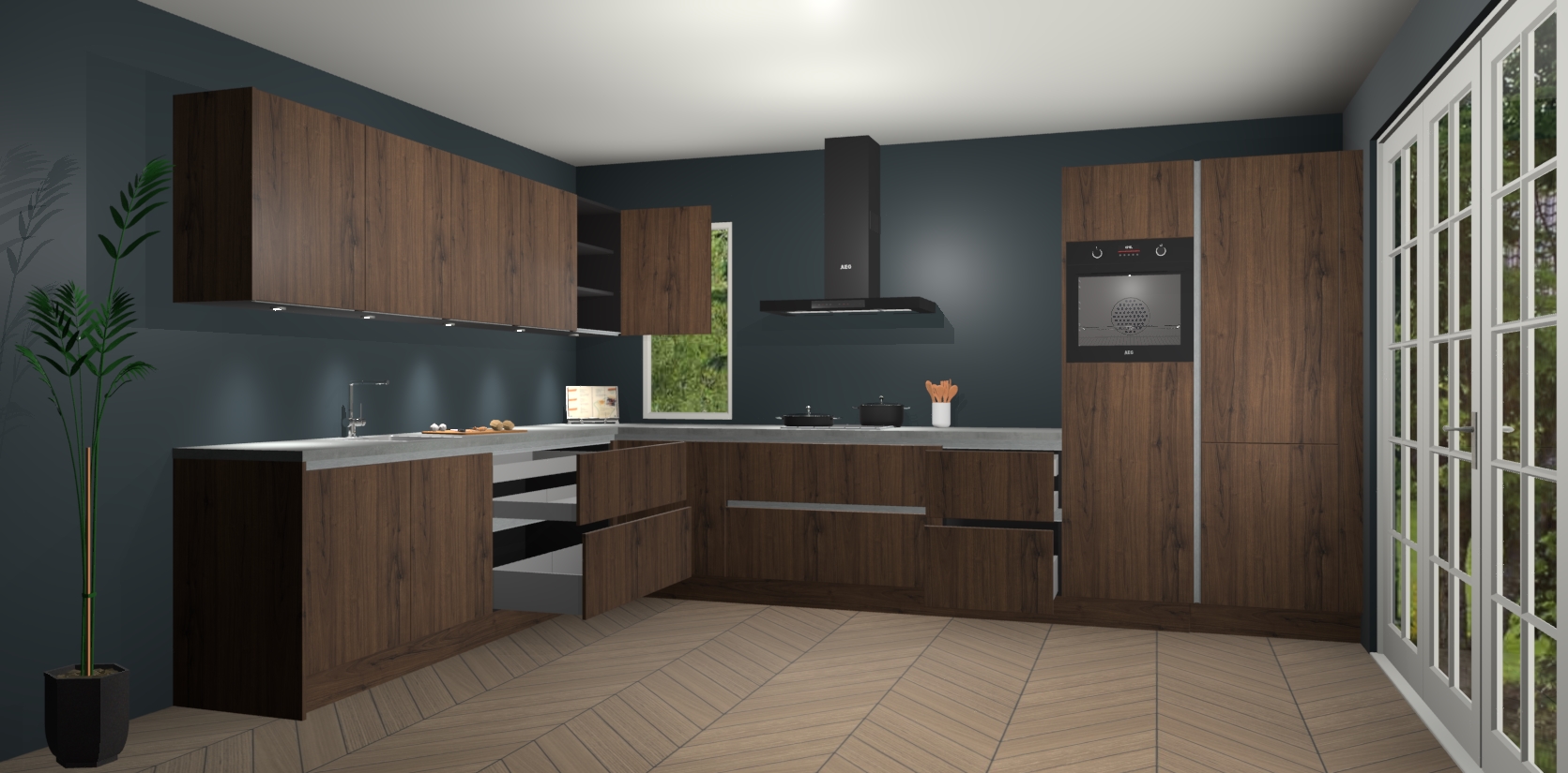 Heeft u nog apparatuur nodig? Geen probleem: de noten greeploze keuken Harare bevat vijf ingebouwde apparaten - een oven, inductiekookplaat, afzuigkap, vaatwasser en koelkast - die gemakkelijk kunnen worden bijgewerkt naar AEG na bestelling. En als dat nog niet genoeg is; onze kasten worden pre-geassembleerd geleverd en zijn verkrijgbaar tegen een vastgeroeste lage prijs! U hoeft nooit meer te zoeken naar goede kwaliteit en service want onze producten hebben echt Duitse kwaliteit.