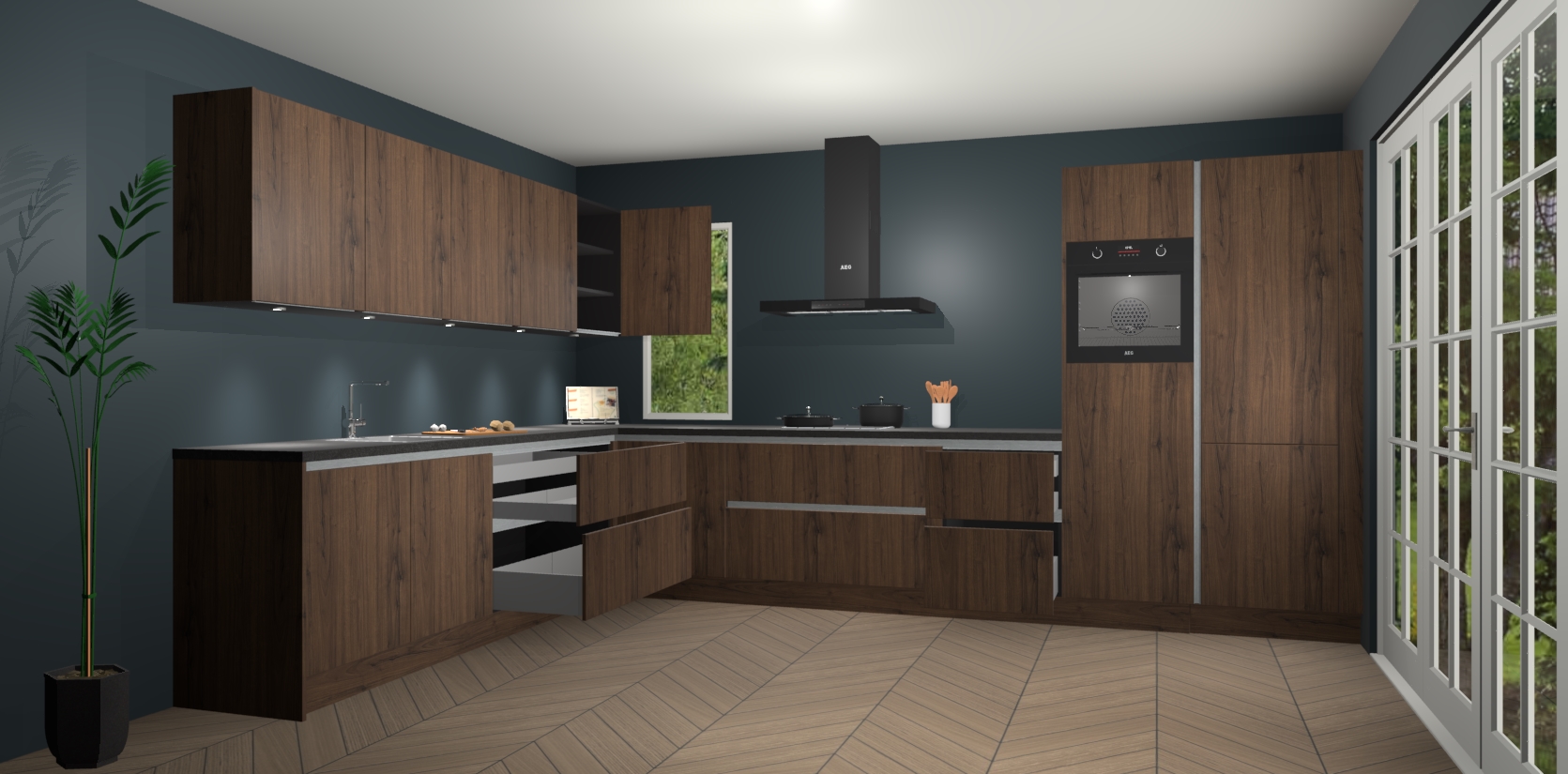 Heeft u nog apparatuur nodig? Geen probleem: de noten greeploze keuken Harare bevat vijf ingebouwde apparaten - een oven, inductiekookplaat, afzuigkap, vaatwasser en koelkast - die gemakkelijk kunnen worden bijgewerkt naar AEG na bestelling. En als dat nog niet genoeg is; onze kasten worden pre-geassembleerd geleverd en zijn verkrijgbaar tegen een vastgeroeste lage prijs! U hoeft nooit meer te zoeken naar goede kwaliteit en service want onze producten hebben echt Duitse kwaliteit.