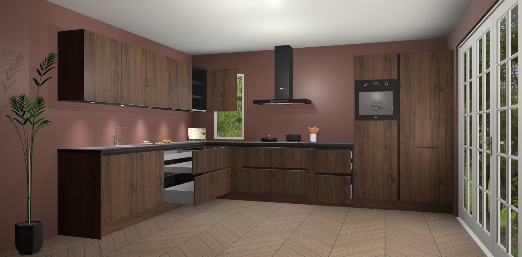 Heeft u nog apparatuur nodig? Geen probleem: de noten greeploze keuken Harare bevat vijf ingebouwde apparaten - een oven, inductiekookplaat, afzuigkap, vaatwasser en koelkast - die gemakkelijk kunnen worden bijgewerkt naar AEG na bestelling. En als dat nog niet genoeg is; onze kasten worden pre-geassembleerd geleverd en zijn verkrijgbaar tegen een vastgeroeste lage prijs! U hoeft nooit meer te zoeken naar goede kwaliteit en service want onze producten hebben echt Duitse kwaliteit.