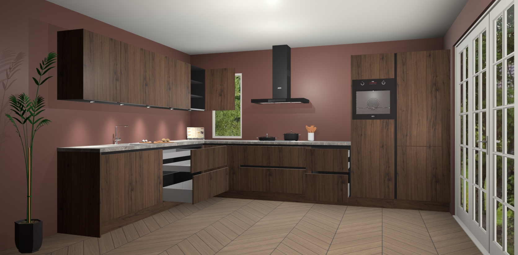 Heeft u nog apparatuur nodig? Geen probleem: de noten greeploze keuken Harare bevat vijf ingebouwde apparaten - een oven, inductiekookplaat, afzuigkap, vaatwasser en koelkast - die gemakkelijk kunnen worden bijgewerkt naar AEG na bestelling. En als dat nog niet genoeg is; onze kasten worden pre-geassembleerd geleverd en zijn verkrijgbaar tegen een vastgeroeste lage prijs! U hoeft nooit meer te zoeken naar goede kwaliteit en service want onze producten hebben echt Duitse kwaliteit.