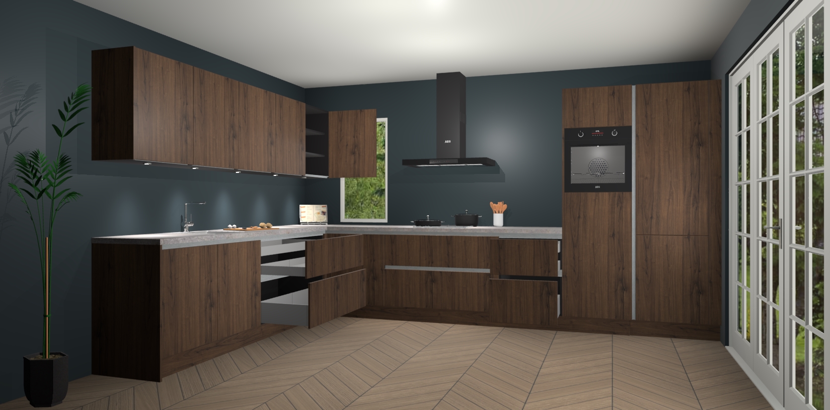 Heeft u nog apparatuur nodig? Geen probleem: de noten greeploze keuken Harare bevat vijf ingebouwde apparaten - een oven, inductiekookplaat, afzuigkap, vaatwasser en koelkast - die gemakkelijk kunnen worden bijgewerkt naar AEG na bestelling. En als dat nog niet genoeg is; onze kasten worden pre-geassembleerd geleverd en zijn verkrijgbaar tegen een vastgeroeste lage prijs! U hoeft nooit meer te zoeken naar goede kwaliteit en service want onze producten hebben echt Duitse kwaliteit.
