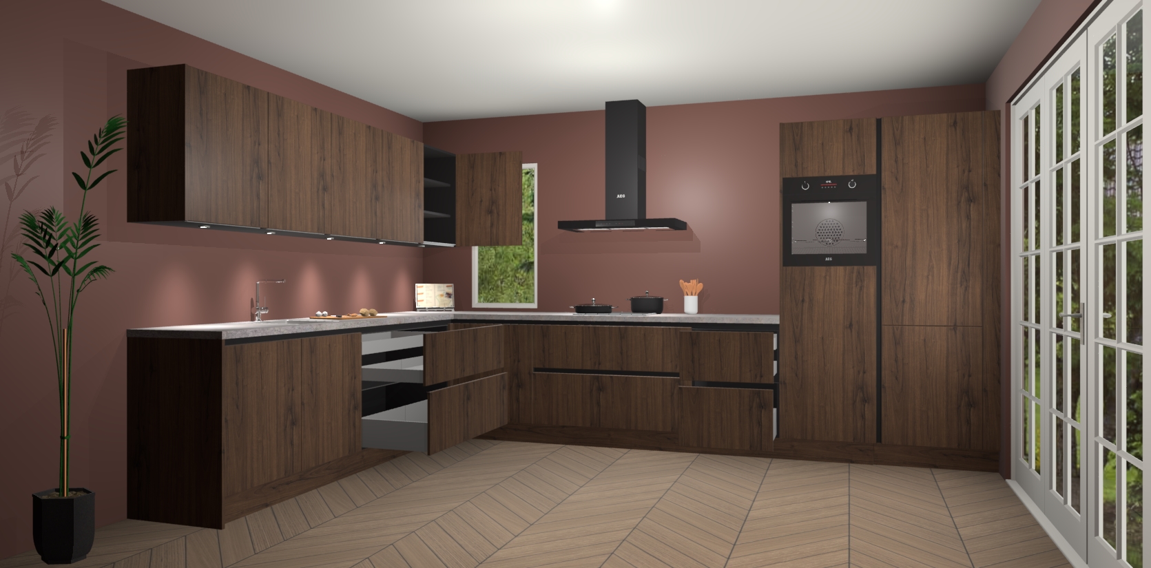 Heeft u nog apparatuur nodig? Geen probleem: de noten greeploze keuken Harare bevat vijf ingebouwde apparaten - een oven, inductiekookplaat, afzuigkap, vaatwasser en koelkast - die gemakkelijk kunnen worden bijgewerkt naar AEG na bestelling. En als dat nog niet genoeg is; onze kasten worden pre-geassembleerd geleverd en zijn verkrijgbaar tegen een vastgeroeste lage prijs! U hoeft nooit meer te zoeken naar goede kwaliteit en service want onze producten hebben echt Duitse kwaliteit.