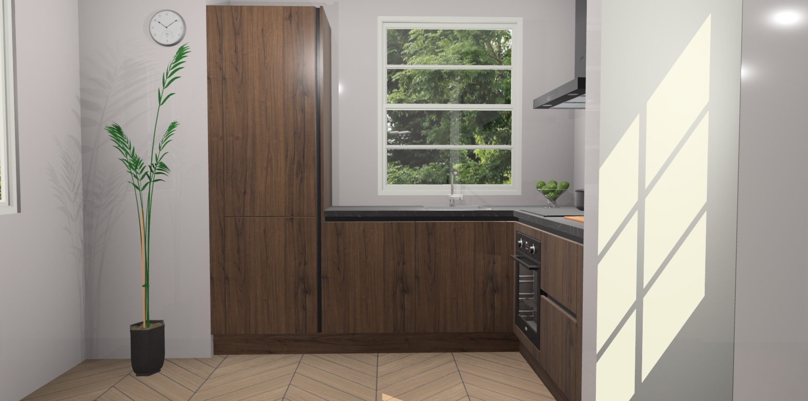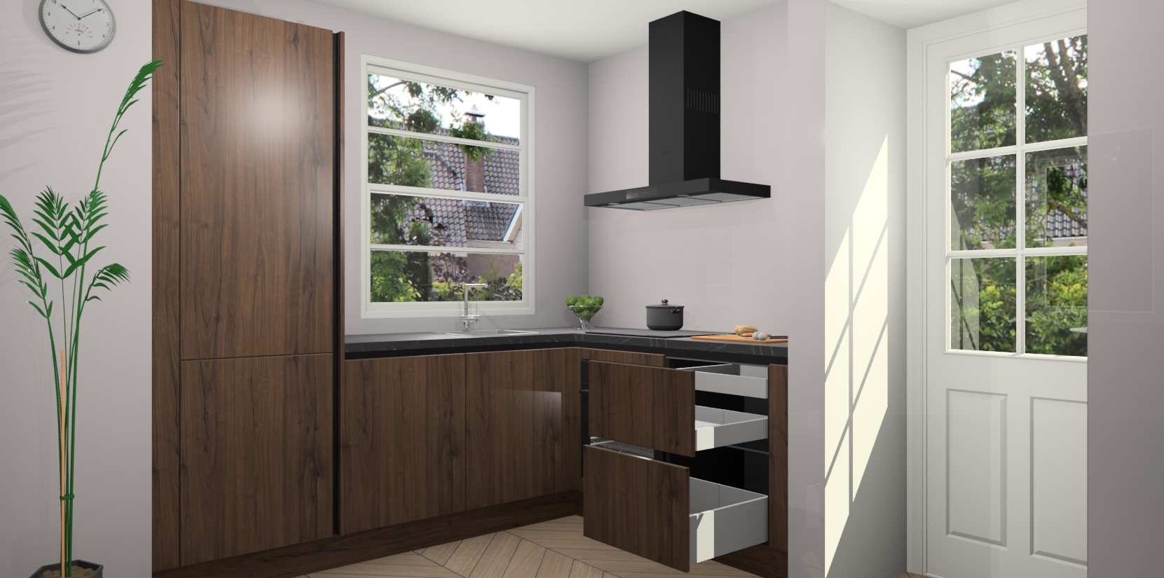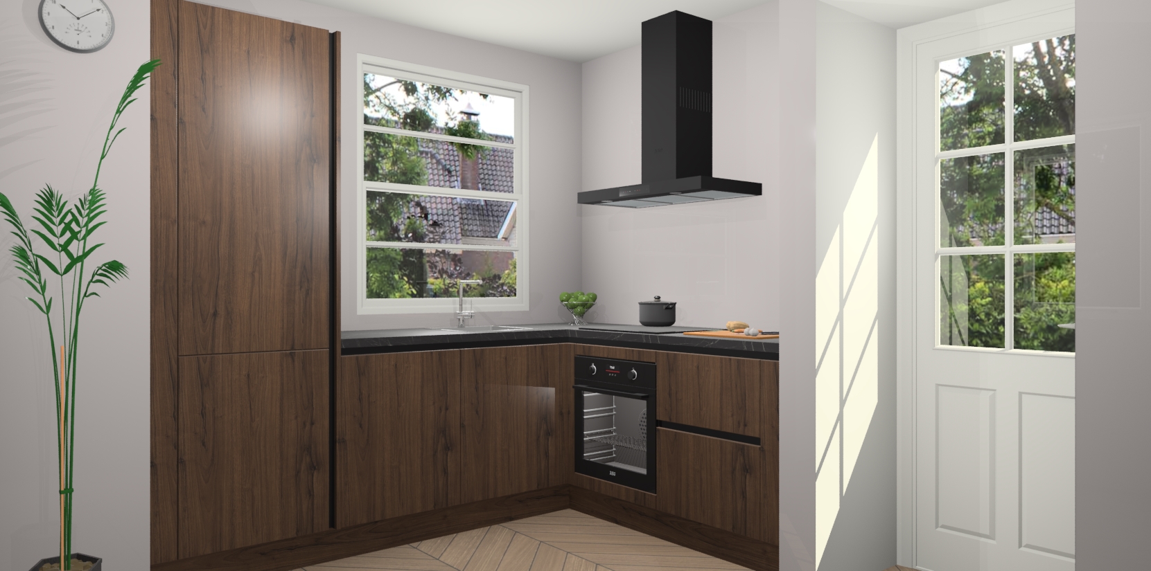 Wilt u een echte aanwinst voor uw keuken, maar bent u op zoek naar iets specialers dan de standaardkeukens? Kies dan voor de Noten greeploze keuken Harbin! Dit prachtige hoekkeukenontwerp geeft u alle ruimte om optimaal te genieten van heerlijk koken. Het uitmuntende afwerkingsniveau, de fraaie houtstructuur en de sfeervolle zwarte grepen maken van de Noten greeploze keuken Harbin de perfecte keuze voor zowel enthousiaste thuiskoks als design-minded interieurliefhebbers.