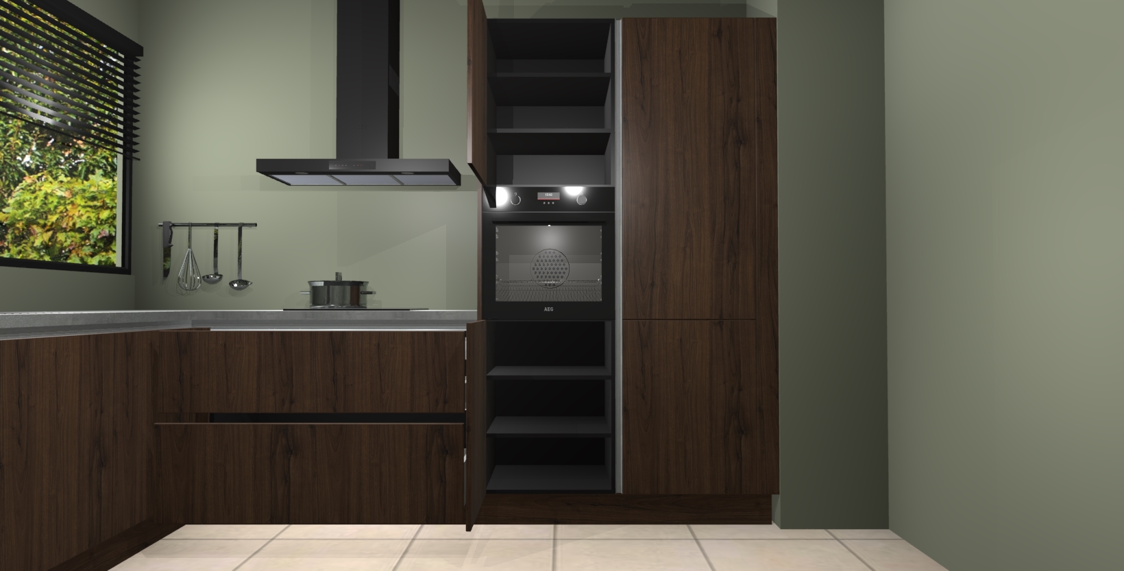 Met een modern, tijdloos design en ruime opslagruimte, zult u zich in no-time thuis voelen in uw nieuwe keuken. Uw leven wordt eenvoudiger met de soft-close deuren die voor het ultieme stille comfort zorgen - geen geluid dat u stoort terwijl u kookt. Ook is de keuken voorzien van 5 ingebouwde apparaten: een oven, inductie kookplaat, afzuigkap, vaatwasser en koelkast. Deze kunnen gemakkelijk na bestelling worden bijgewerkt naar AEG - waardoor uw luxe ervaring compleet is.