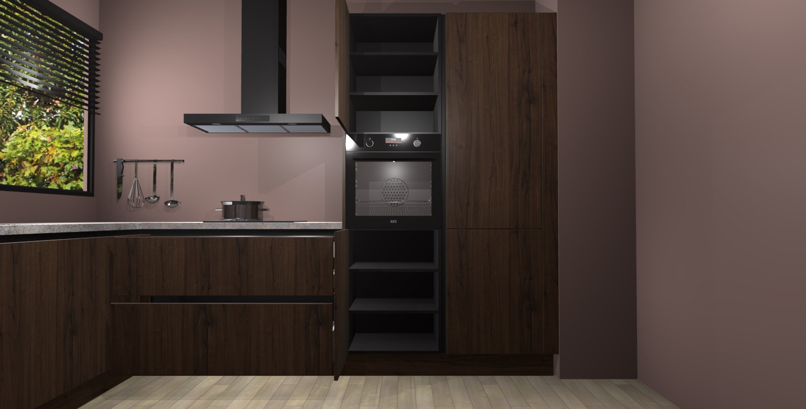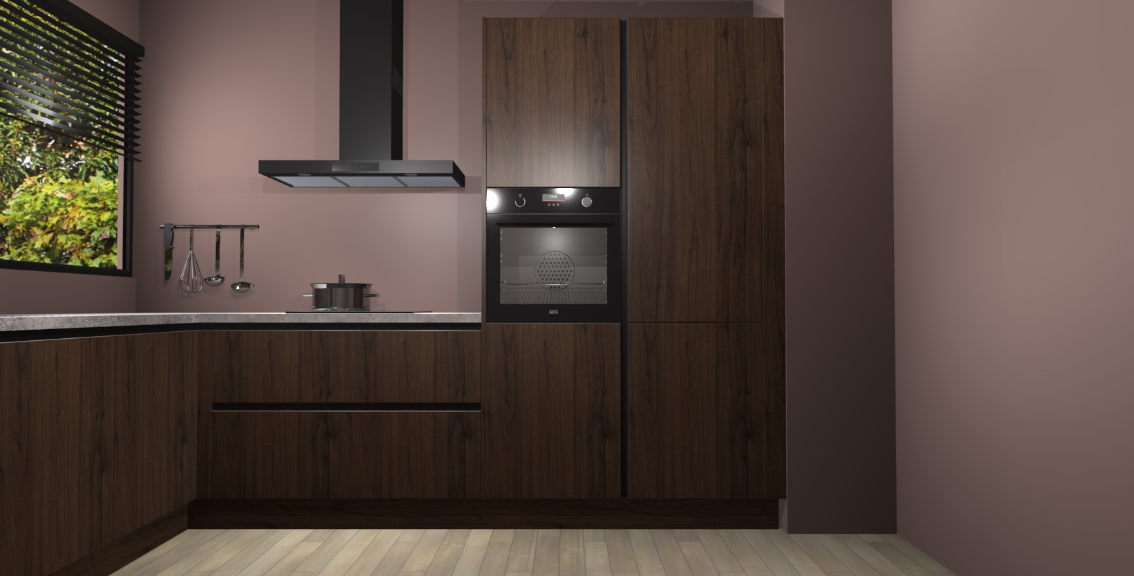 Met een modern, tijdloos design en ruime opslagruimte, zult u zich in no-time thuis voelen in uw nieuwe keuken. Uw leven wordt eenvoudiger met de soft-close deuren die voor het ultieme stille comfort zorgen - geen geluid dat u stoort terwijl u kookt. Ook is de keuken voorzien van 5 ingebouwde apparaten: een oven, inductie kookplaat, afzuigkap, vaatwasser en koelkast. Deze kunnen gemakkelijk na bestelling worden bijgewerkt naar AEG - waardoor uw luxe ervaring compleet is.