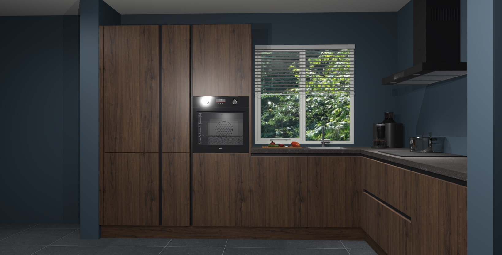 Met een modern, tijdloos design en ruime opslagruimte, zult u zich in no-time thuis voelen in uw nieuwe keuken. Uw leven wordt eenvoudiger met de soft-close deuren die voor het ultieme stille comfort zorgen - geen geluid dat u stoort terwijl u kookt. Ook is de keuken voorzien van 5 ingebouwde apparaten: een oven, inductie kookplaat, afzuigkap, vaatwasser en koelkast. Deze kunnen gemakkelijk na bestelling worden bijgewerkt naar AEG - waardoor uw luxe ervaring compleet is.