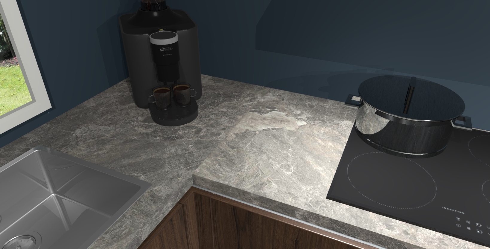 • Bij een hoekwerkblad zijn de hoeken in gevreesd en op maat gemaakt