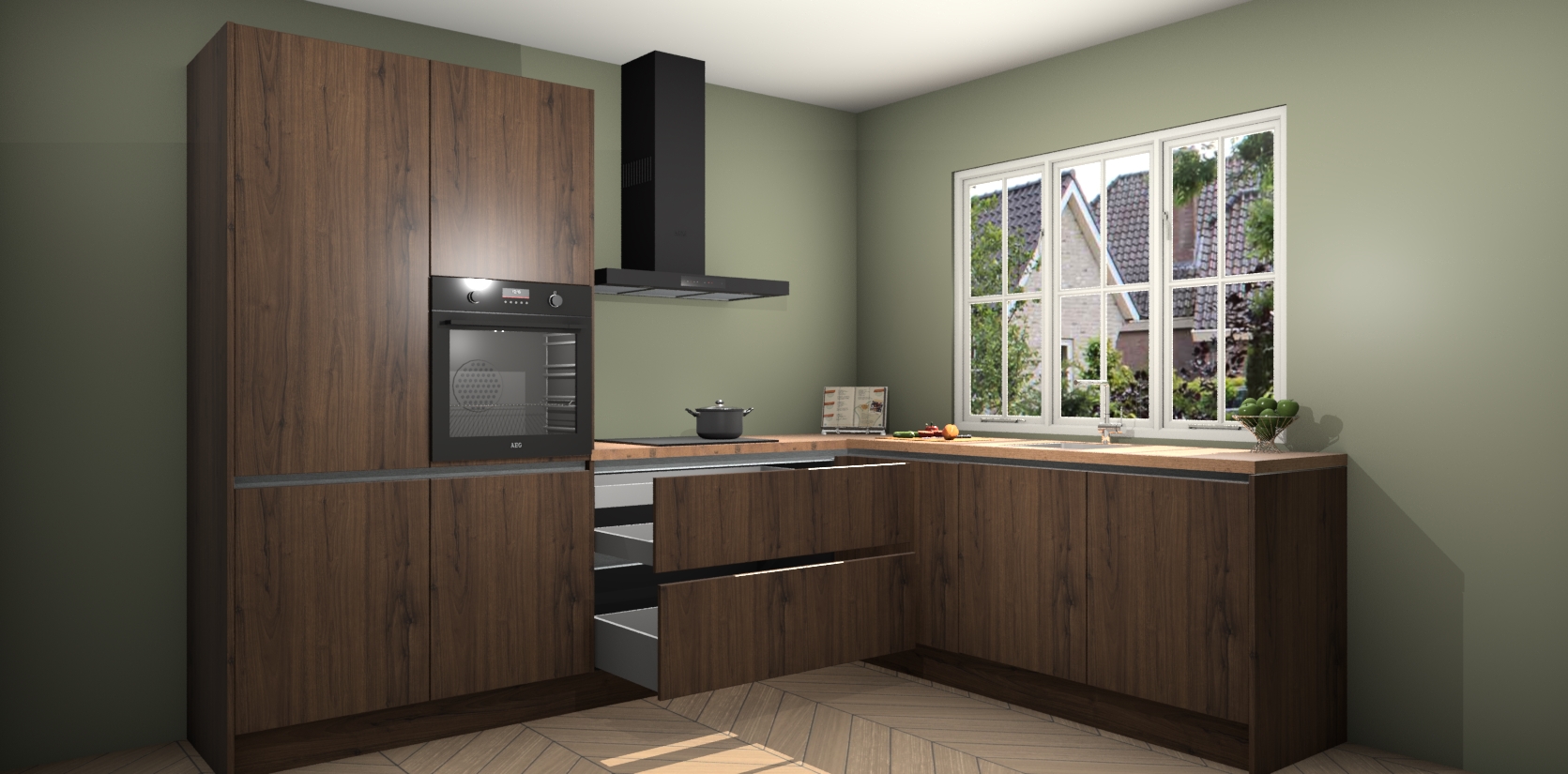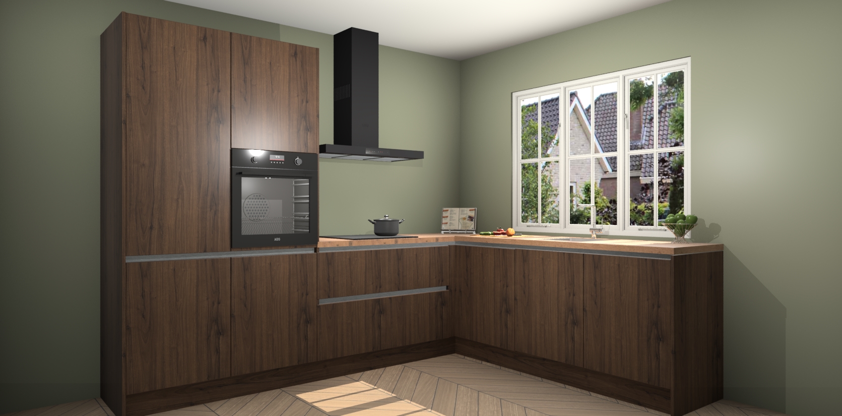 Heeft u genoeg van dezelfde keukenontwerpen die de markt overspoelen? Dan is de Noten greeploze keuken Kazan de juiste keuze voor u! Deze prachtige hoekkeuken heeft een modern en tijdloos design dat een elegant tintje geeft aan uw ruimte.