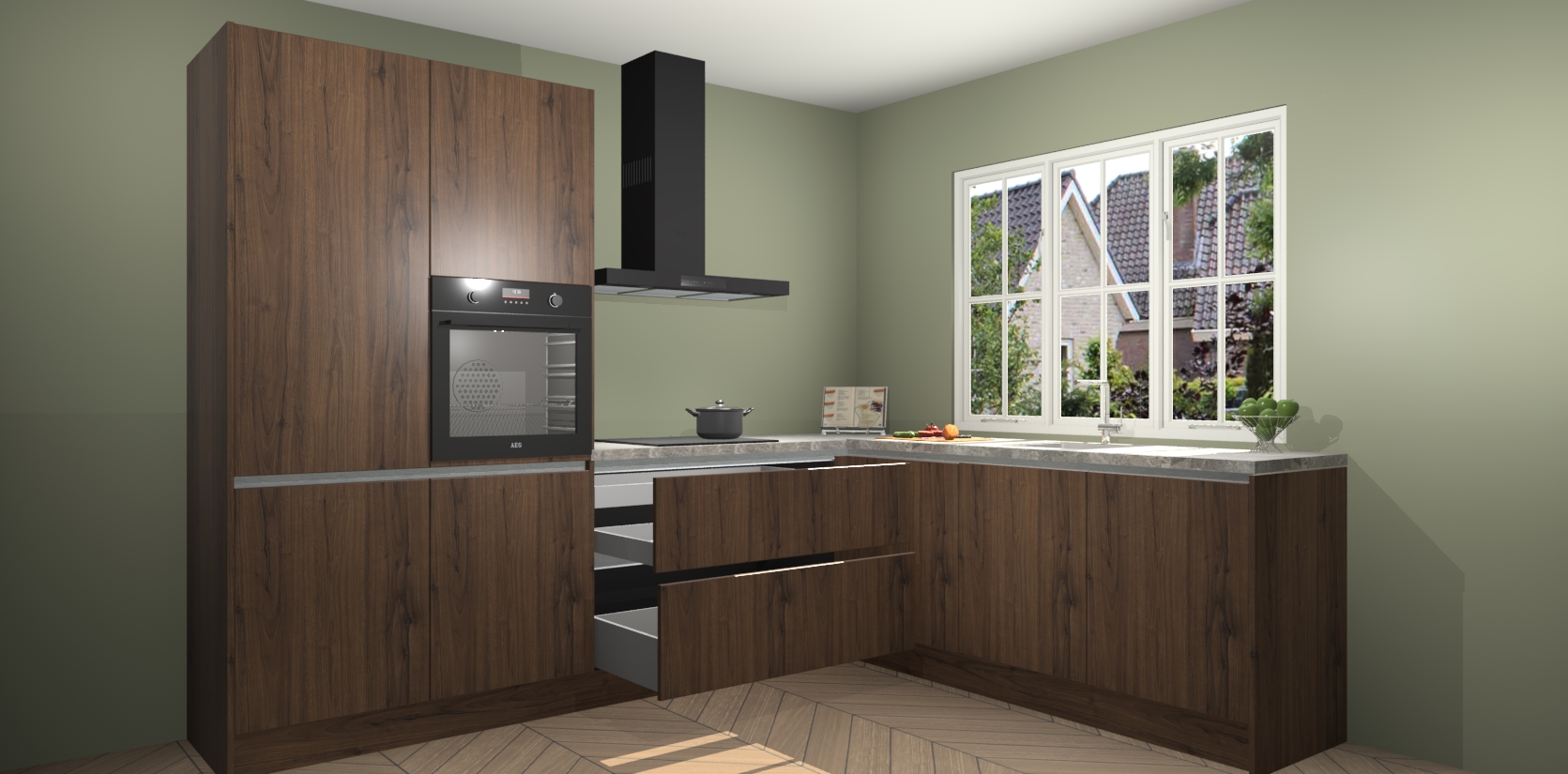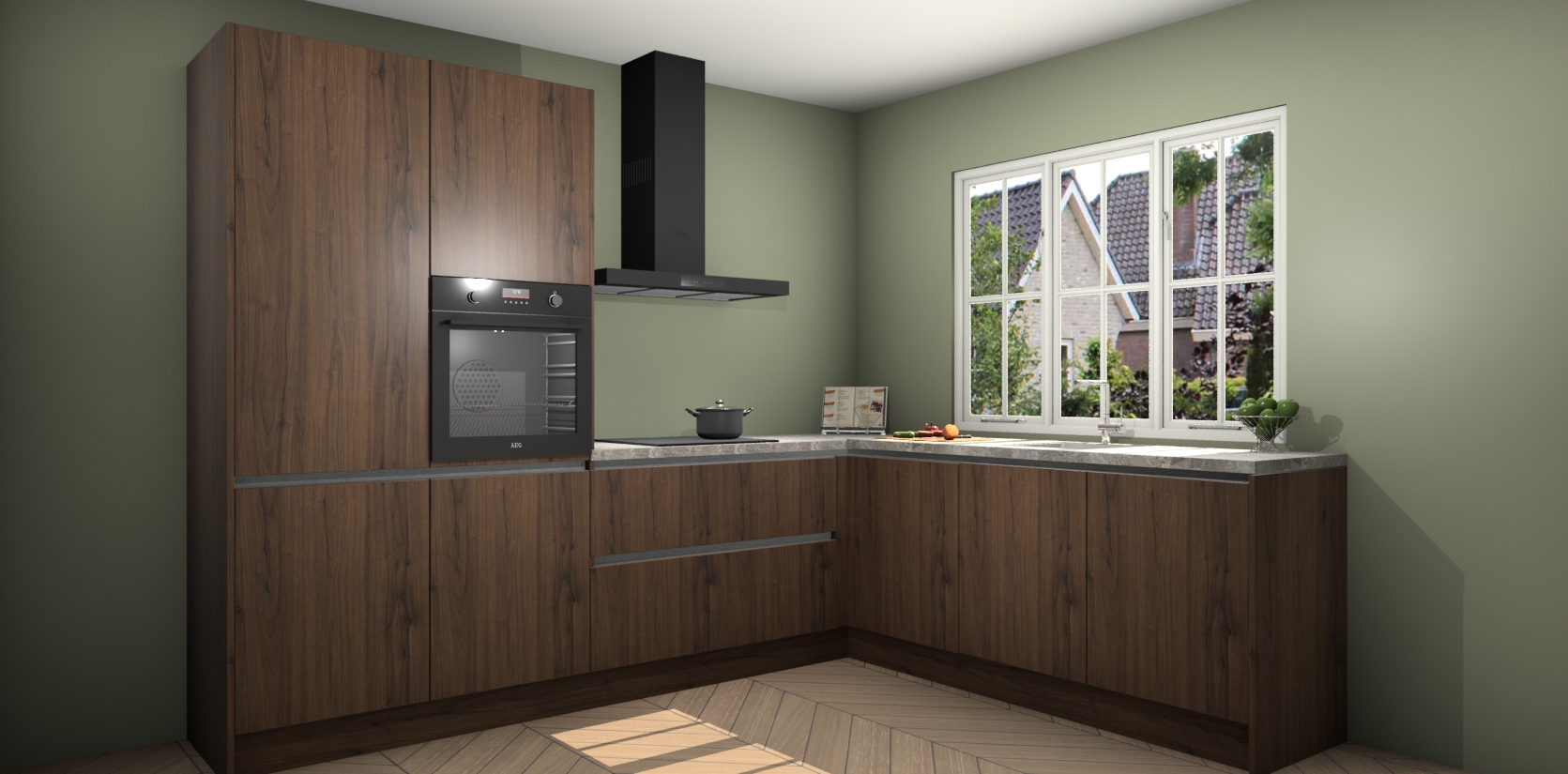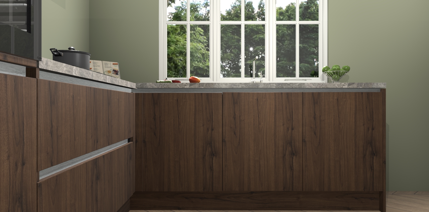 Heeft u genoeg van dezelfde keukenontwerpen die de markt overspoelen? Dan is de Noten greeploze keuken Kazan de juiste keuze voor u! Deze prachtige hoekkeuken heeft een modern en tijdloos design dat een elegant tintje geeft aan uw ruimte.