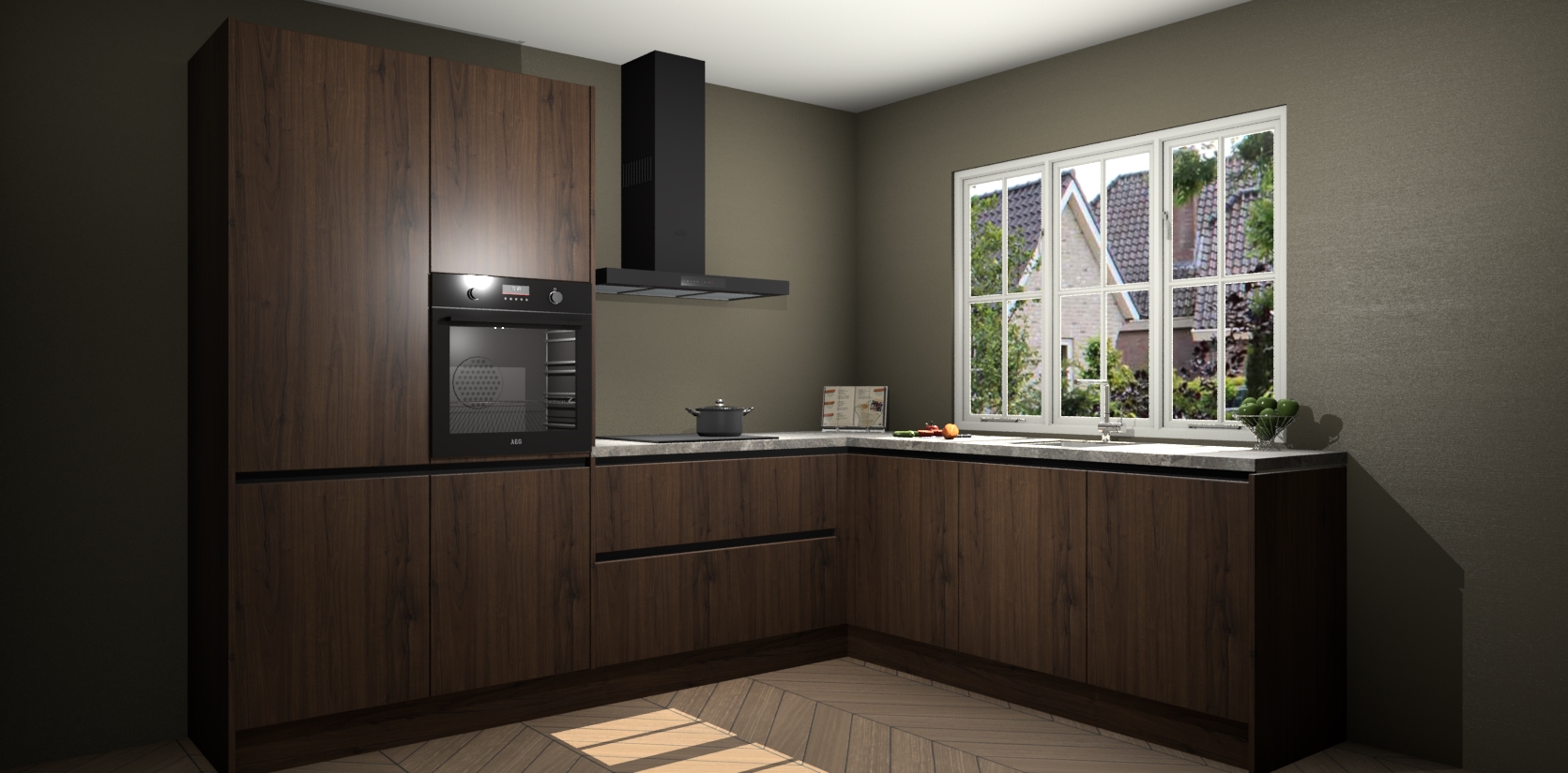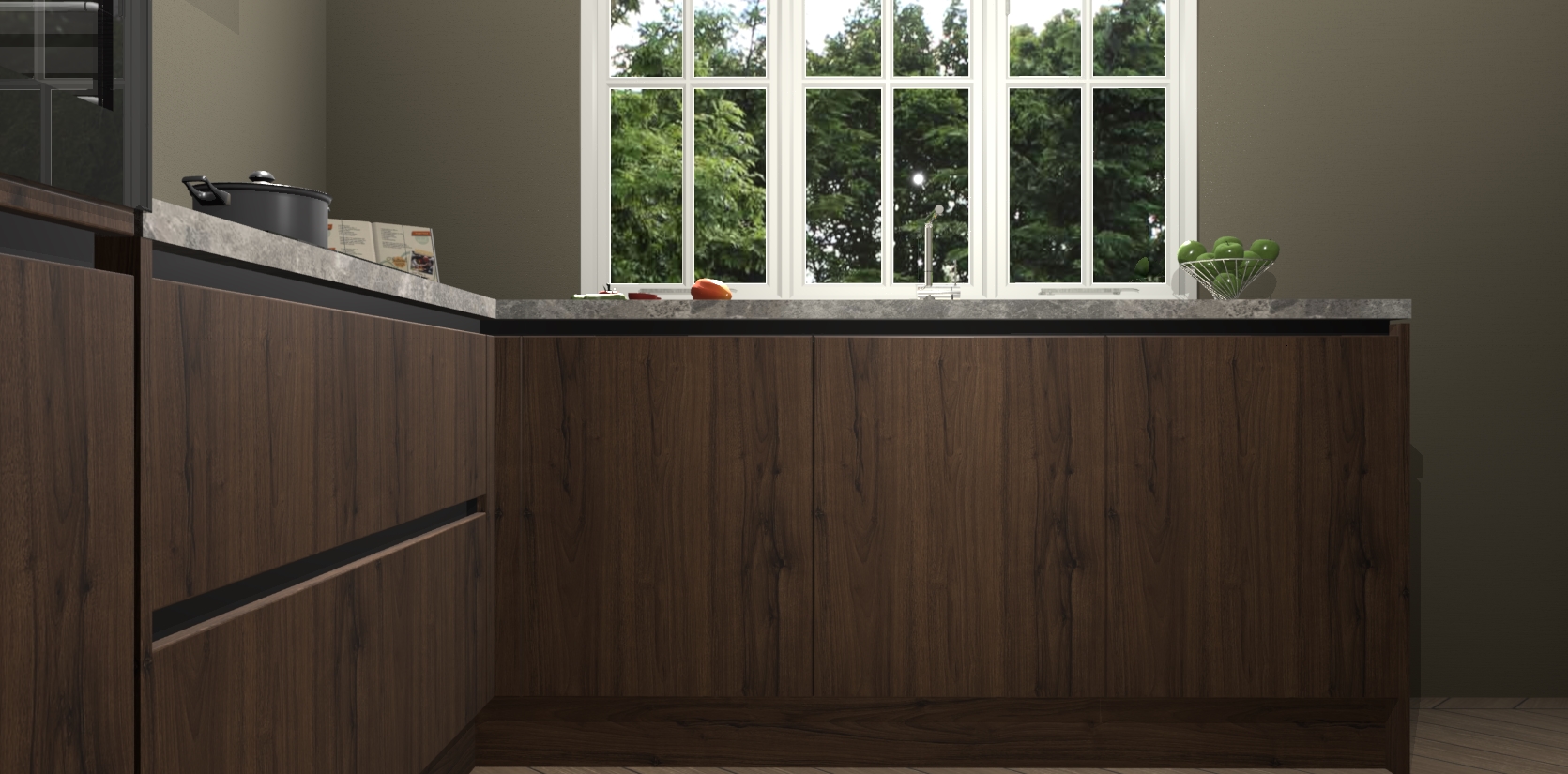 Heeft u genoeg van dezelfde keukenontwerpen die de markt overspoelen? Dan is de Noten greeploze keuken Kazan de juiste keuze voor u! Deze prachtige hoekkeuken heeft een modern en tijdloos design dat een elegant tintje geeft aan uw ruimte.