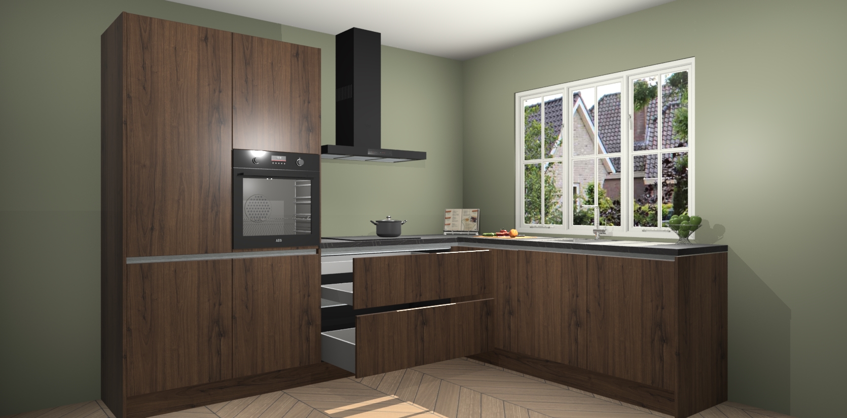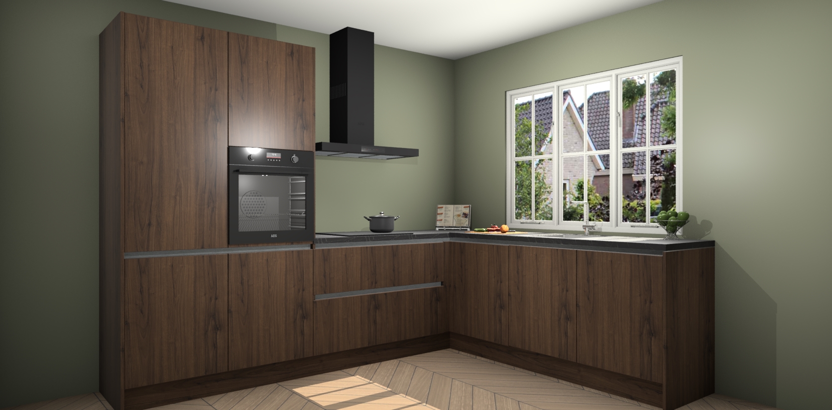Heeft u genoeg van dezelfde keukenontwerpen die de markt overspoelen? Dan is de Noten greeploze keuken Kazan de juiste keuze voor u! Deze prachtige hoekkeuken heeft een modern en tijdloos design dat een elegant tintje geeft aan uw ruimte.