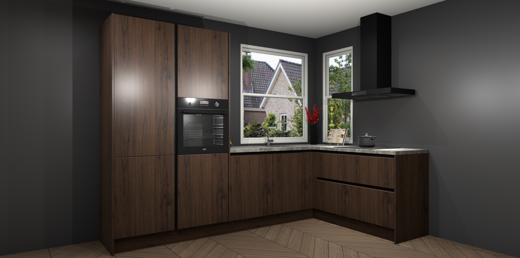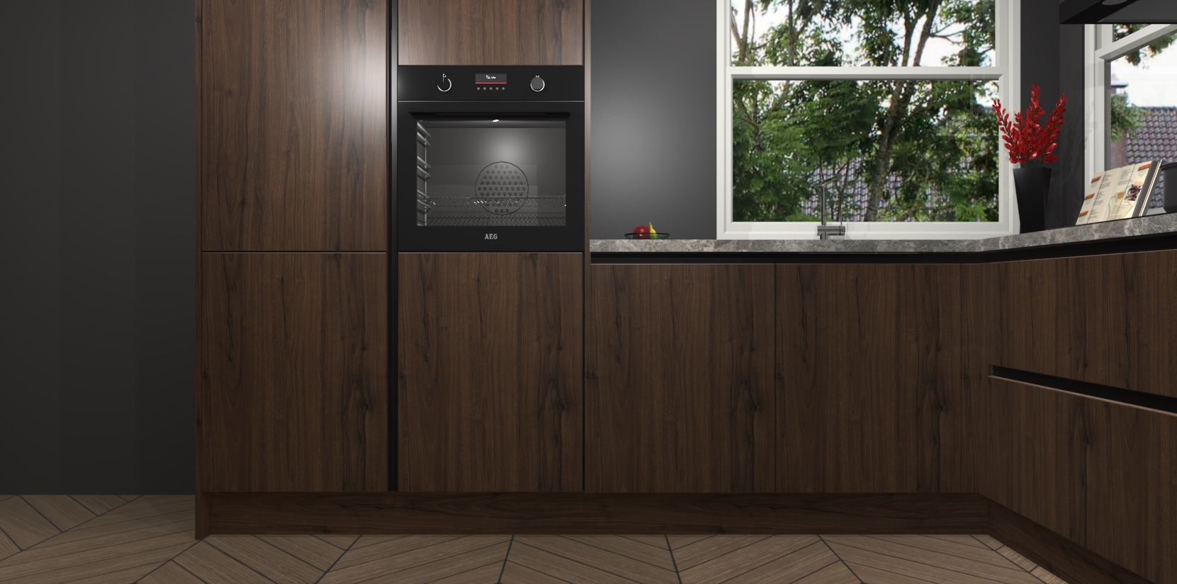 De Noten greeploze keuken Kotor wordt geleverd met vijf inbouwapparaten, waaronder een oven, inductiekookplaat, afzuigkap, vaatwasser en koelkast. En als u uw apparatuur wilt upgraden, kunnen we u na bestelling eenvoudig helpen overstappen naar AEG. Bovendien heeft deze keuken soft close deuren, zodat lades en kastjes geruisloos en zonder klepperen sluiten!